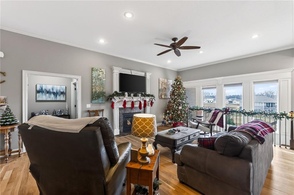 Welcome home to this beautifully maintained reverse ranch in the sought-after community of Kearney, MO, offering space, style, and functionality throughout. This 4-bedroom, 3-bath home features a 3-car attached garage and a spacious open-concept floorplan connecting the kitchen, dining area, and living room-perfect for everyday entertaining. The living room is anchored by a cozy fireplace, while the dining area walks out to a private deck, ideal for morning coffee or evening gatherings. The upstairs primary suite is generously sized with vaulted ceilings and a private bath retreat. The finished lower level expands your living space with a welcoming family room featuring a gorgeous bar, additional bedrooms, and a hidden bonus room perfect for storage, a home gym, or hobby space. The walk-out basement leads to a nicely fenced backyard complete with a paver stone patio and a built-in fire pit, creating an inviting outdoor oasis for all seasons. Located in a highly desirable neighborhood with easy access to schools, shopping, and highways - this home checks all the boxes. Come and take a look! We think you'll love it!