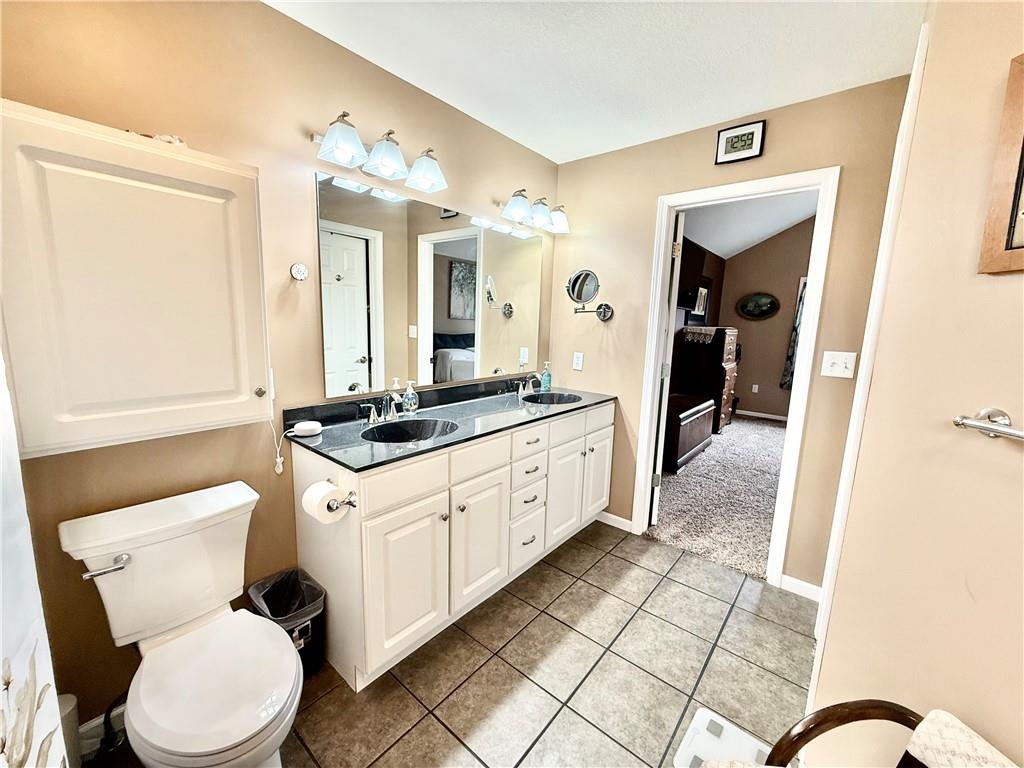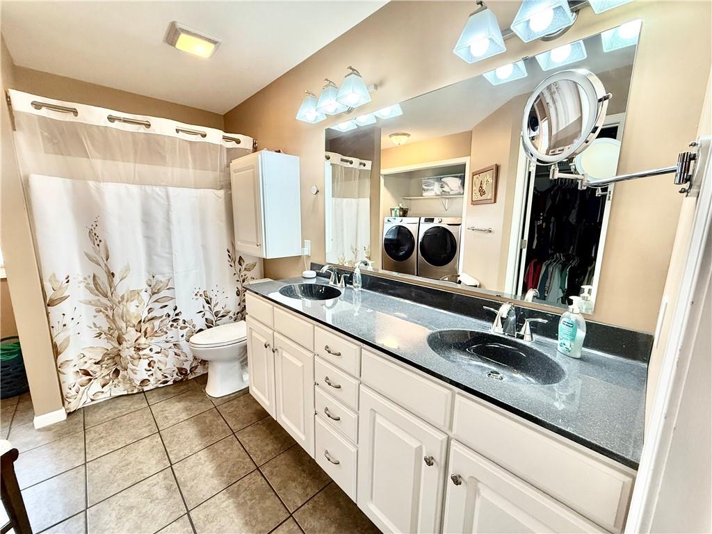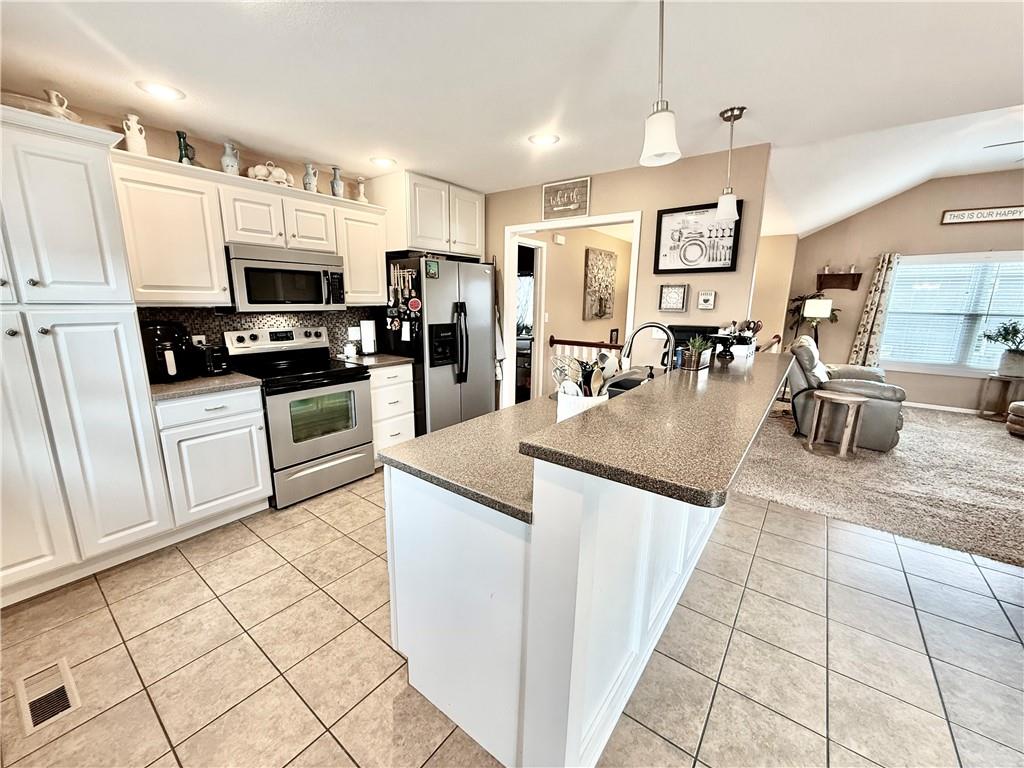 Immaculate and move-in ready, this beautifully designed home offers three bedrooms and three full bathrooms with vaulted ceilings and spacious rooms throughout. Enjoy two generous family rooms—one on the main level and another in the finished basement—providing plenty of space for relaxing and entertaining. The main-floor primary suite features a walk-in closet and convenient in-suite washer and dryer. The thoughtful layout offers privacy, with the primary bedroom on one side of the home and guest bedrooms on the other. The open kitchen flows seamlessly into the dining area and includes a large countertop bar, perfect for casual meals and gatherings. Step outside to a private deck complete with a hot tub, surrounded by beautiful landscaping. Traditional highlights include an extra-wide driveway with ample parking and a well-maintained exterior. This home combines comfort, functionality, and privacy in a truly inviting setting.