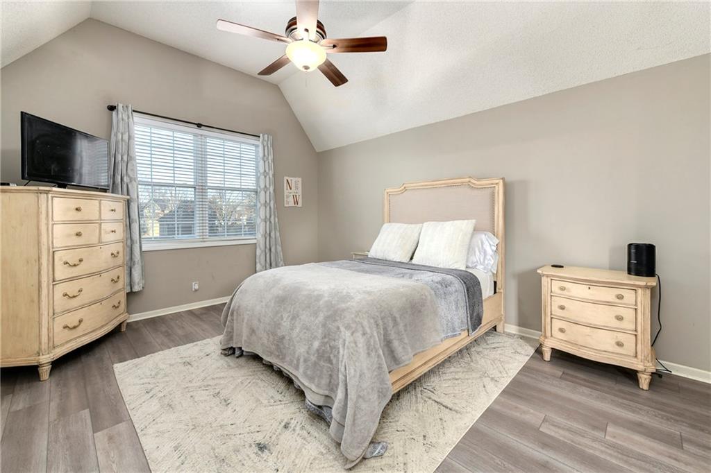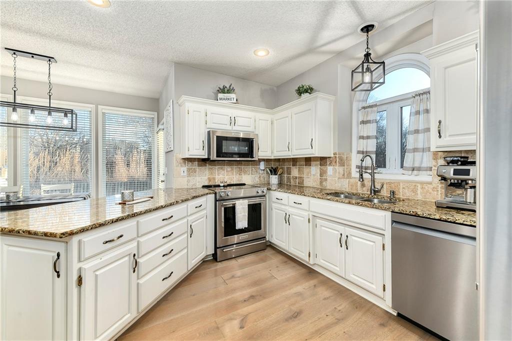 Knockout 2-story in a fantastic location! This gorgeous, move-in-ready home features wide-plank hardwood floors throughout the main level and a dynamic, open floor plan centered around a two-sided fireplace enjoyed from both the great room and kitchen. The bright kitchen offers white cabinetry, granite countertops, updated stainless steel appliances, and opens to a stylish breakfast room—perfect for everyday living and entertaining. Upstairs, the primary suite is a true retreat with LVP flooring, a dramatic vaulted ceiling, a spacious walk-in closet, and a private bath complete with transom window, oversized shower with seat, double vanity, and heated tile floors. Secondary bedrooms are generously sized with excellent closet space and share a Hollywood bath with double vanity. Recent updates include flooring throughout, updated light fixtures and interior paint, an updated fireplace façade, fresh exterior paint and new garage doors in 2025. A radon mitigation system adds peace of mind. The private, fenced backyard backs to greenspace and the Indian Creek Trail—an ideal setting to relax or entertain on the composite deck with built-in seating. An in-ground sprinkler system helps keep the yard looking its best. Enjoy neighborhood amenities including a pool, trails, playground, and regularly planned community social events like parade & egg hunt. Plus the elementary school is just a few blocks away. This home truly offers the total package at an exceptional value. Schedule your showing today!