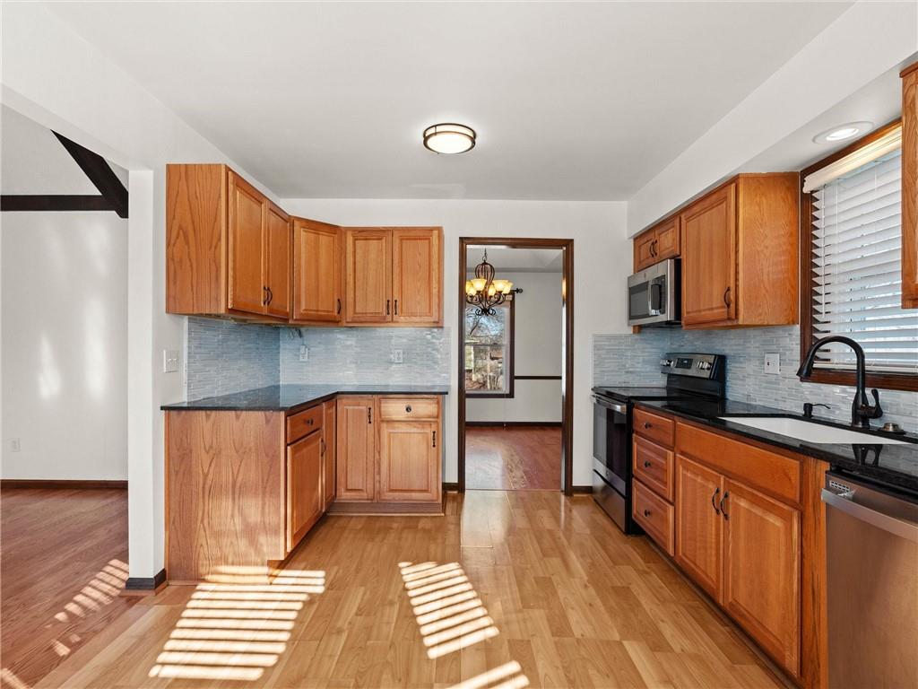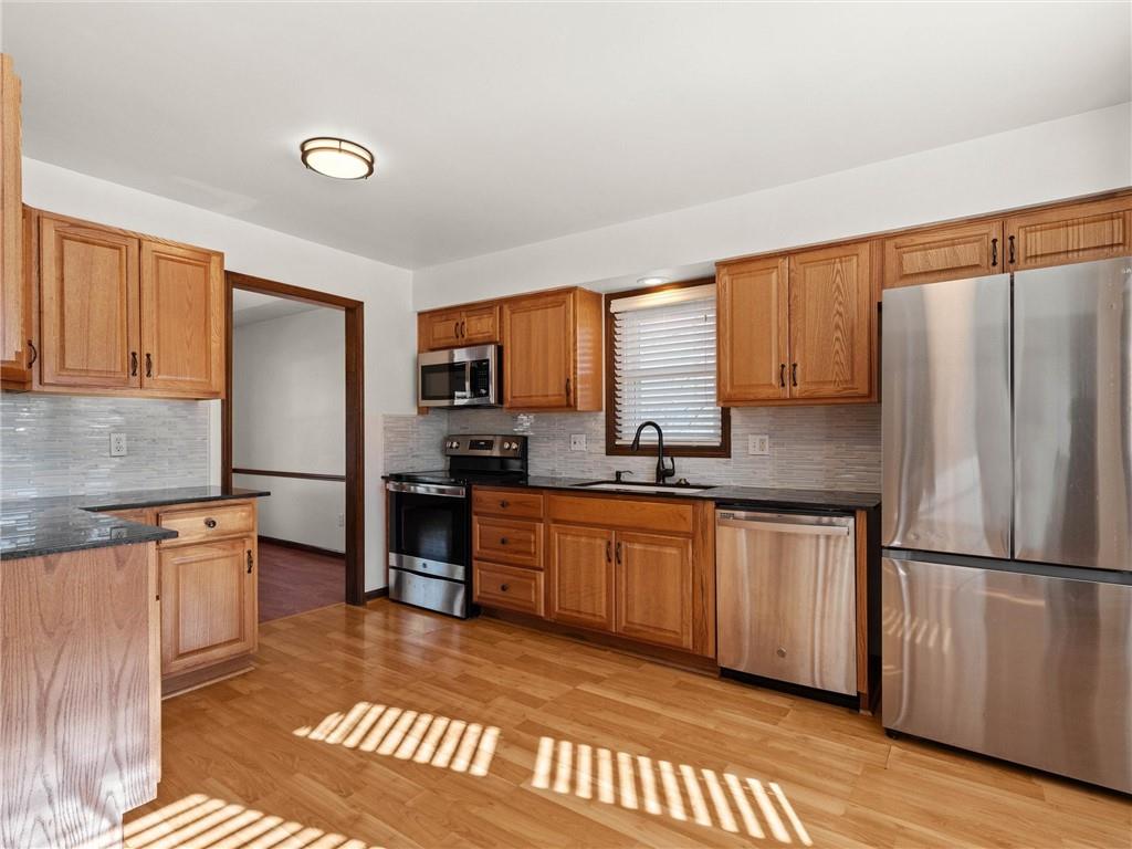 Prepare to fall in love with this meticulously maintained raised ranch that’s been pampered from head to toe. From the moment you pull up, you’ll appreciate the excellent curb appeal, one year old architectural roof, newer garage doors, and crisply poured concrete driveway and extra wide stairs leading up to the front porch. Step inside to find a home that perfectly balances "fancy dinner party" vibes in the formal rooms with "kick back and relax" energy in the family room, where vaulted wood-beamed ceilings and a crackling fireplace steal the show. The kitchen is a total standout with its shimmering glass backsplash, granite counters, and shiny newer appliances that are just waiting for your first home-cooked meal. Retreat to a primary suite—complete with a gorgeously remodeled bathroom featuring a spa-like shower—or head downstairs to discover a basement that’s ready for movie marathons. If you’ve been dreaming of a space for your side hustle, the garage-adjacent hobby room with its own sink is a total game-changer for crafters, stylists, or remote workers. Top it all off with a massive, fenced-in backyard featuring a "party-ready" expanded deck and a sprinkler system to keep your lawn the envy of the block, and you’ve got a home that’s as fun as it is functional! Enjoy peace of mind with the big items taken care of for you including newer windows throughout, freshly scraped ceilings, and one year old roof. Schedule your private showing NOW & see what makes this home truly exceptional!
