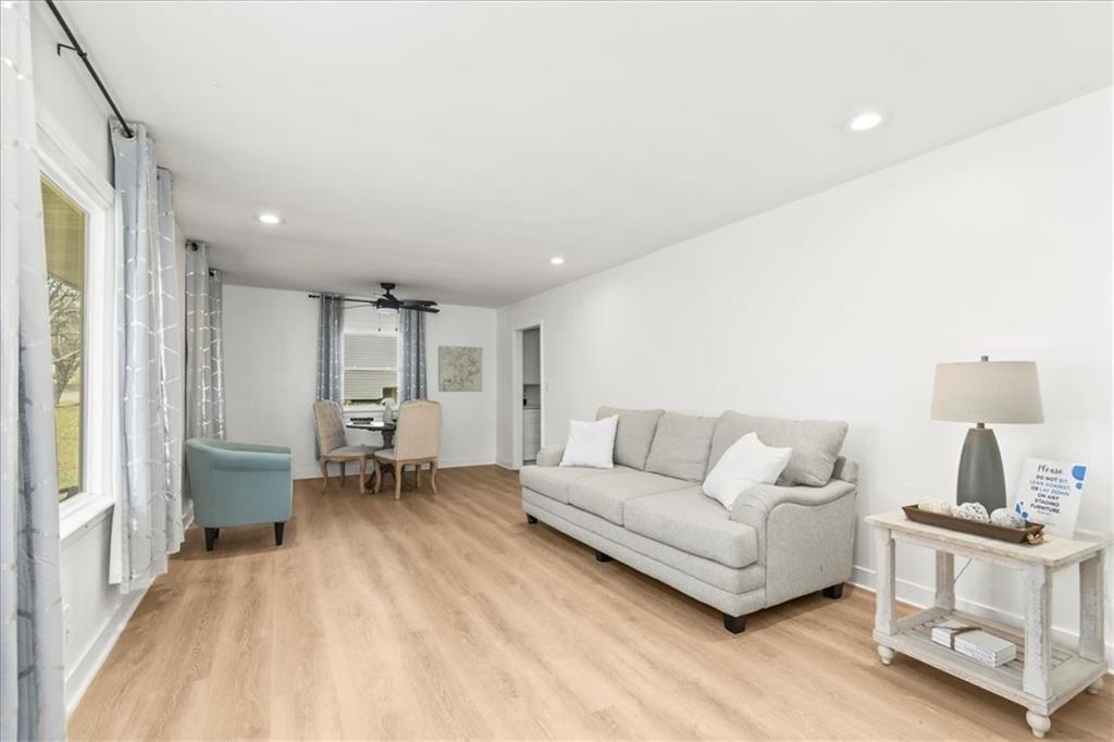 Discover your dream home in the heart of Independence, where classic charm meets modern luxury in this beautiful move-in ready ranch. Step inside to an open-concept living area that glows with natural light, highlighting the seamless luxury vinyl plank flooring that flows into an elegant eat-in kitchen. This chef-inspired space is a showstopper, featuring crisp white shaker cabinets, durable quartz countertops, and a sleek stainless steel appliance suite including a premium gas range. The attention to detail continues in the spa-like bathroom, boasting a stunning walk-in tile shower with a built-in bench, contemporary matte black fixtures, and a stylish marble-topped vanity. Outside, the property offers incredible versatility with a large level lot and a detached one-car garage perfect for a workshop or extra storage. Relax on the private back deck overlooking your spacious yard—an ideal setting for weekend gatherings or a peaceful morning coffee. Located in a quiet, established neighborhood with easy access to local amenities, this turnkey single-family home is a rare find for first-time buyers or those looking to downsize without compromising on style. Don't miss this opportunity to own a modern oasis with significant curb appeal and high-end finishes throughout.