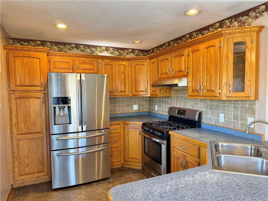 3 BD, 2 BA on 10 acres with a 30x40 shop. The living room features a vaulted ceiling & a wood stove. It's open to the dining area and kitchen, which also includes an eating bar. The stainless steel appliances in the kitchen are staying (refrigerator, dishwasher & gas stove). There's a sliding door off the dining area that leads to the back deck overlooking the acreage. The primary bedroom with a walk in closet is on the main level along with a full bathroom. The upstairs features 2 bedrooms, 1 of which also has a walk in closet, and the other full bathroom. The unfinished basement could be finished for more space if needed. Washer & dryer also stay. Covered front deck. Vinyl siding for easy maintenance. You will fall in love with the shop! 2 garage doors, 1 being oversized, concrete floors, electricity & the refrigerator also stays in there. Covered front porch. The 10 acres leaves lots of room to run and play, has a pond (it's currently low) and also plenty of trees.