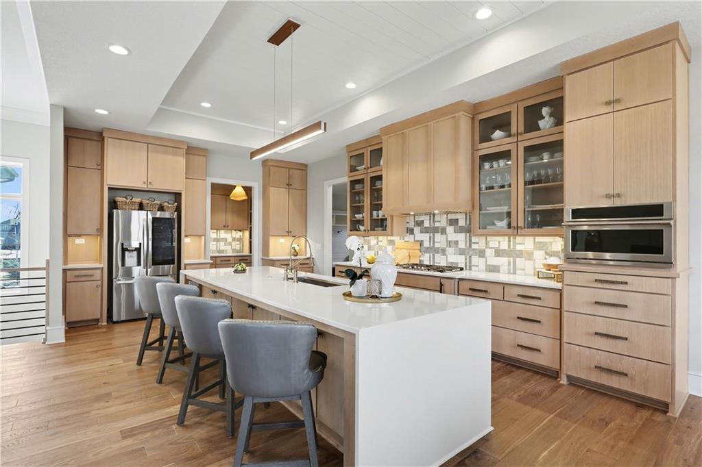 Step into this breathtaking custom-built 1.5 reverse floor plan where style, space, and sophistication come together seamlessly. Just shy of 4,500 square feet, this exceptional home offers 4 bedrooms, 3.2 baths, a 3-car garage, and a coveted walk-out lower level. Stunning curb appeal welcomes you with beautifully manicured landscaping and a charming front porch, while the peaceful backdrop of mature woods and a protected stream creates a private, nature-filled retreat. Inside, an open-concept layout is flooded with natural light and showcases soaring ceilings, gorgeous light hardwood floors, and elegant finishes throughout. The show-stopping kitchen is a dream for entertaining, featuring an oversized island, abundant cabinetry, and a butler’s pantry complete with beverage center and extra prep space. Slide open the glass doors and step onto the fully screened-in porch, the perfect spot to unwind while overlooking the serene, tree-lined setting. The main-floor primary suite is a true sanctuary, highlighted by a stunning statement wall and a spa-inspired bath with backlit mirrors, a luxurious soaking tub, and a jaw-dropping walk-in closet featuring custom built-ins, a center island, and a dedicated makeup vanity. A second main-level bedroom and full bath add flexibility and convenience. Downstairs, the finished walk-out lower level expands your living and entertaining space with two additional bedrooms, a spacious family room with a full wet bar, and an impressive workshop with sealed floors, motion-sensor lighting, and direct access to the backyard and a second covered screened porch. No detail was overlooked — from the epoxy-coated garage floor and upgraded interior lighting to enhanced landscaping and countless thoughtful touches. With approximately $83,000 in upgrades, this home shows like new, has been lightly lived in, and meticulously maintained. Why wait to build when you can have luxury, upgrades, and perfection ready now!