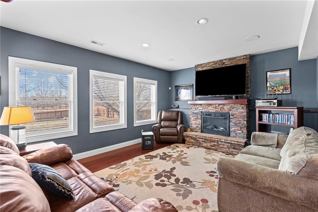 Welcome home to 1301 NE 196th Street in Smithville, where space, comfort, and location come together effortlessly. A covered front porch sets a welcoming tone before you step inside to an open floor plan that seamlessly connects the kitchen, dining area, and living room—ideal for both everyday living and entertaining. A half bath on the main level adds everyday convenience. Upstairs, the spacious primary suite offers a true retreat with two walk-in closets and a jetted tub, while three additional bedrooms and a full hall bath provide plenty of room for everyone to unwind. The finished lower level adds even more flexibility with a generous rec room, complete with a wet bar and a convenient half bath—perfect for hosting, hobbies, or movie nights. Step outside to an expansive fenced backyard, accessible from both the main level and basement, with no homes directly behind you for added privacy. Located directly across the street from the neighborhood pool and close to community trails and a pond, this home is also just minutes from Smithville Lake and nearby boat docks. With four bedrooms, two full bathrooms, and two half baths, plus a layout designed for real living, this home makes it easy to imagine yourself settling in and staying awhile.