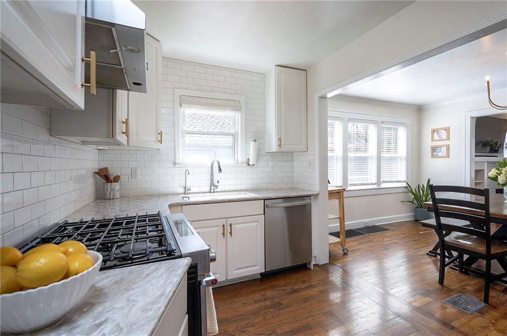 Sunny days on your porch swing will be home sweet home this spring! Darling turnkey home in Westwood Hills with 3 bedrooms, 2 baths, main floor laundry (W/D stay), full basement for storage and 4 off street parking spaces. Refinished hardwood floors, open airy and bright with updated kitchen and baths. Fantastic layout with main floor bedroom and bath, plus 2 bedrooms and a bath upstairs-could be an ideal plan for roommates or multi-generation families. Primary bedroom with two large closets. Step outside for fresh air to the private deck off one of the upstairs bedrooms. Updated white kitchen with granite counters, upgraded stainless steel appliances all stay including gas range. New storm door added in 2022, newer HVAC, water heater, updated electrical, water filtration system, new dishwasher and washer. Convenient location near KU Med, charming Westwood shops and local restaurants, less than 10min to downtown KC and in the high demand SM East school district. Don't miss this rare opportunity to live in Westwood at an exceptional value!