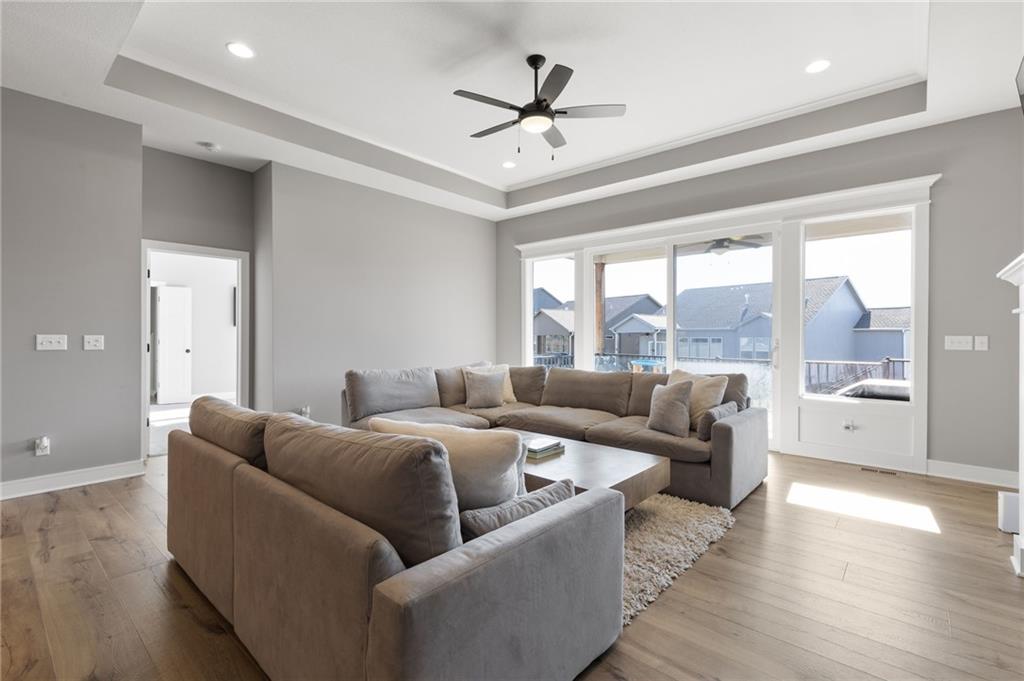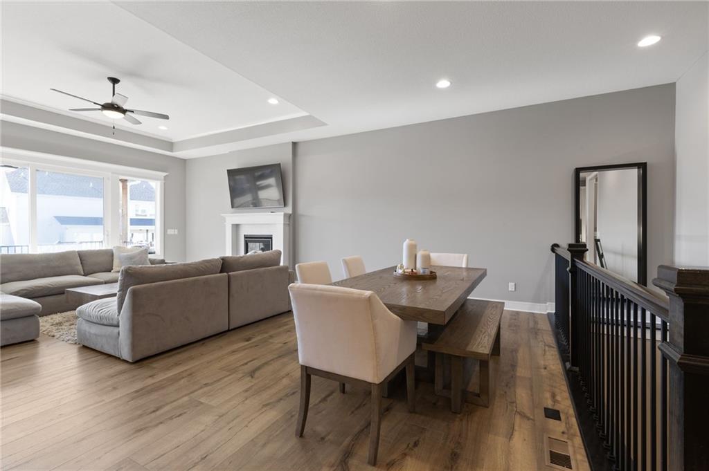This BEAUTIFUL 5 bedroom, 3 bath home, built in 2022, combines modern design with comfortable living! The main level features 10 foot ceilings, designer finishes, and an open great room that flows into a chef’s kitchen with built-in appliances and generous storage. Primary suite offers a spa-inspired bath with an OVERSIZED ZERO ENTRY shower. The finished basement adds valuable living space with a rec room, wet bar, two bedrooms and one full bathroom. Enjoy the covered porch and spacious yard, as well as access to Pryor Ridge community amenities including trails, playground, courts, dog park, and pool!!