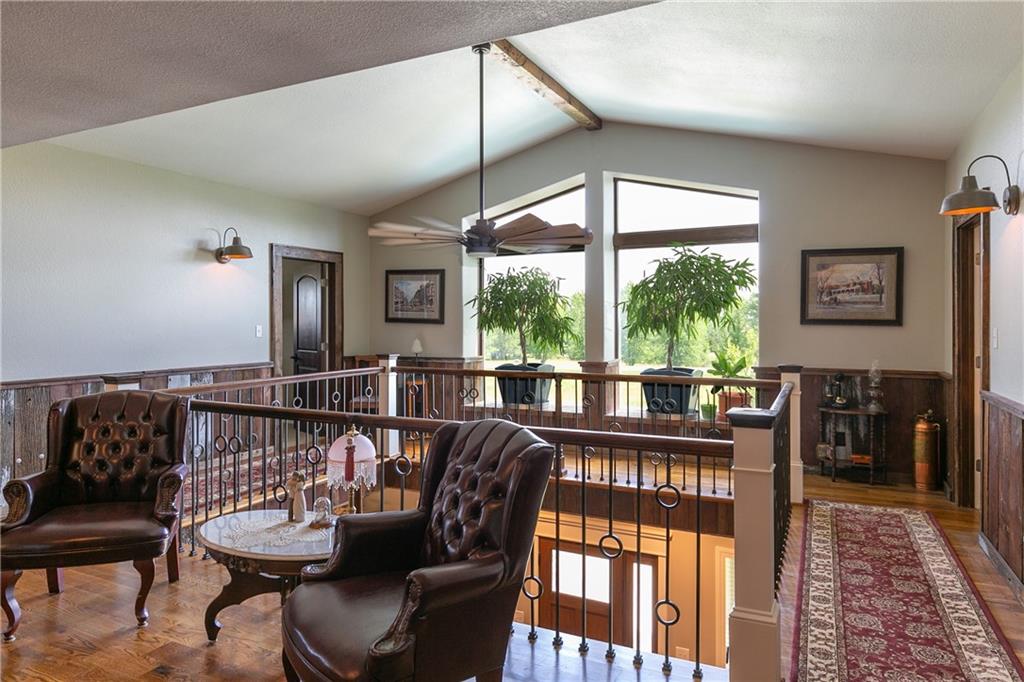 Incredible BARNDOMINIMUM on 15 acres in rural Leavenworth County. Enjoy peaceful country living with convenient highway access in this stunning barn-style home that truly has it all. A large covered front porch welcomes you into approximately 3,500± square feet featuring an expansive open floor plan ideal for comfort and entertaining. Inside, you’ll find custom cabinetry, barn doors, hardwood floors, and tile surfaces throughout. The main-level primary suite was designed for long-term living and includes a zero-entry walk-in shower with heated floors. A built-in tornado shelter adds peace of mind, and abundant storage is available throughout the home. This versatile property also features a 60’ x 90’ horse arena and multiple garage and workshop spaces. In addition to the attached two-car garage, there is a bonus one-car garage/workshop and an additional 24’ x 20’ rear storage area, perfect for equipment, hobbies, or extra vehicles. This is a one-of-a-kind property that offers something for everyone. It’s the one you waited for!!
