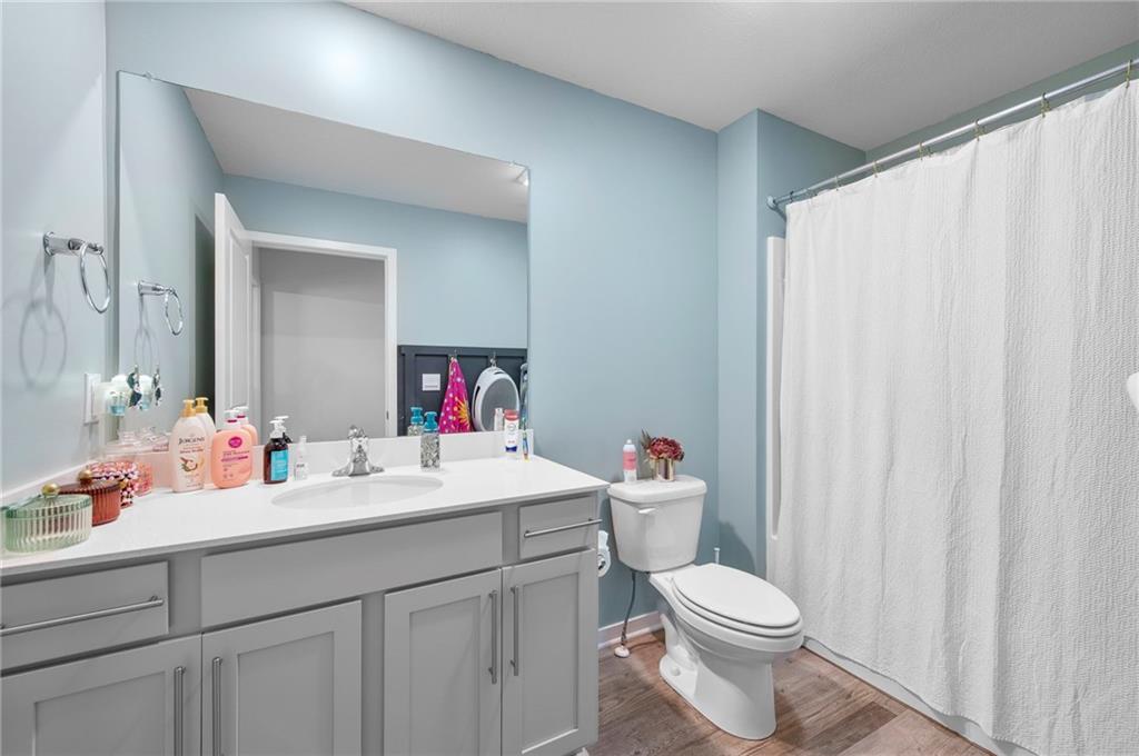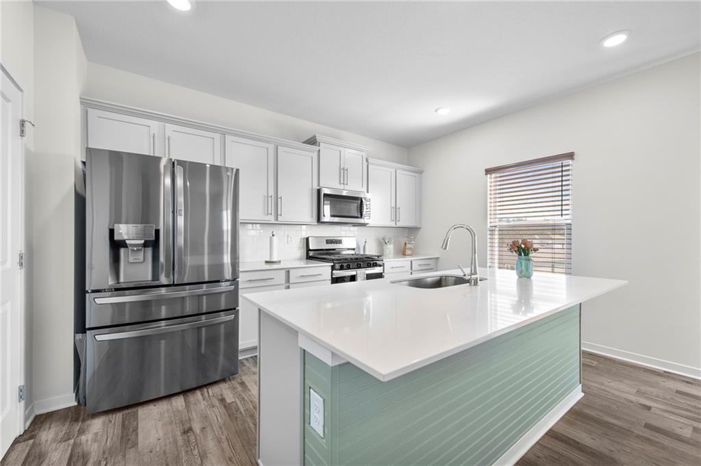 Welcome to this better-than-new two-story home crafted by D.R. Horton. This 4-bedroom, 3-bath residence features 9-foot ceilings and an open, spacious layout designed for modern living. The large gourmet kitchen is a standout, offering quartz countertops, painted maple cabinetry, and premium Whirlpool appliances, making it ideal for both everyday living and entertaining. The home continues to impress with luxurious bathrooms, complete with quartz-topped vanities and Moen faucets. The primary suite delivers a spa-like experience with a five-foot shower and framed glass enclosure. Enjoy elevated comfort and convenience with climate and security control via a Honeywell Pro-Z Wave thermostat. The finished basement adds a wonderful extension of the home, creating a cozy and versatile space ideal for family movie nights, game days, or hosting friends. Whether you’re looking for a comfortable retreat to unwind or an inviting area to entertain, this thoughtfully finished space offers endless possibilities for making memories together. Blending luxury with functionality, this home showcases thoughtful design upgrades throughout. Paired with its unbeatable location, this exceptional property truly has it all.