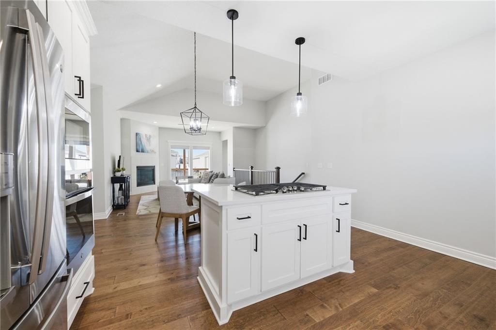 Maintenance provided living at it's BEST! 2 Years young! Inviting, covered front porch. Happy and bright interior! Wide plank, honey-toned, textured Hardwood Floors caress the main floor. Open kitchen featuring Arctic White Quartz counters and island with 5-burner gas range, downdraft hookup ready if desired,soft-close cabinets and drawers, SS appliances, open to dining and great room w/ gas fireplace, Covered Deck, and steps to the yard! Underground fence installed for your sweet pups, or install a fence! Rare options for maintenance provided properties! HUGE Primary Suite with Double Vanity, Ceramic tile shower, potty closet, large walk-in closet conveniently connected to the Laundry Room. 2nd Main Floor Bedroom and full bath! Lower level has media room/rec room and 3rd bedroom & Bath. Two storage largestorage rooms! ALL Stainless Steel Appliances stay and Washer/Dryer! Furniture negotiable! New hot water heater 2025! Vivint security system ready! STUNNING professional landscaping with River Rock beds Lawn care & snow removal included in low monthly HOA Fees of $150! Close proximity to shopping, restaurants, parks & recreation, and Smithville Lake! Great access to Hwy 169, 152, and 435! Get to the airport in less than 15 minutes!