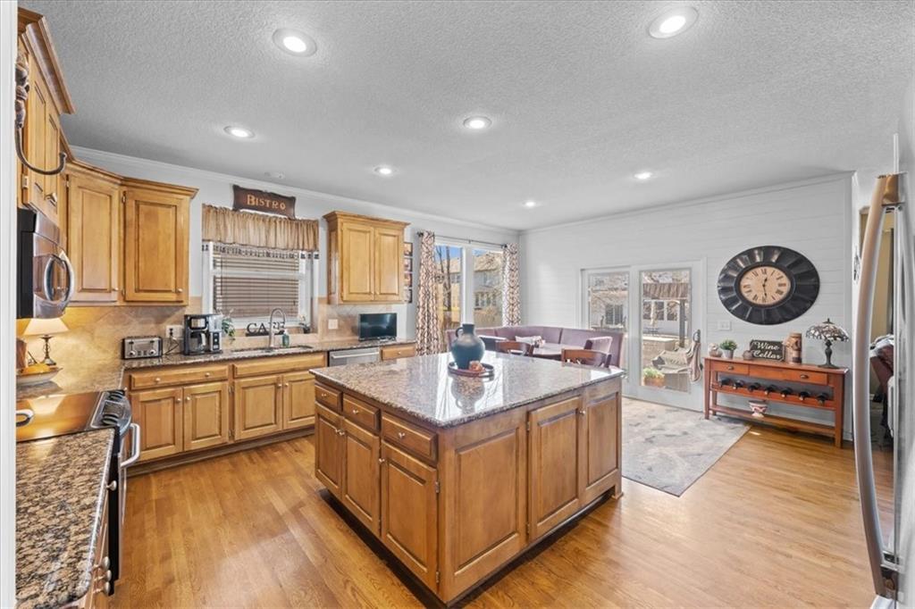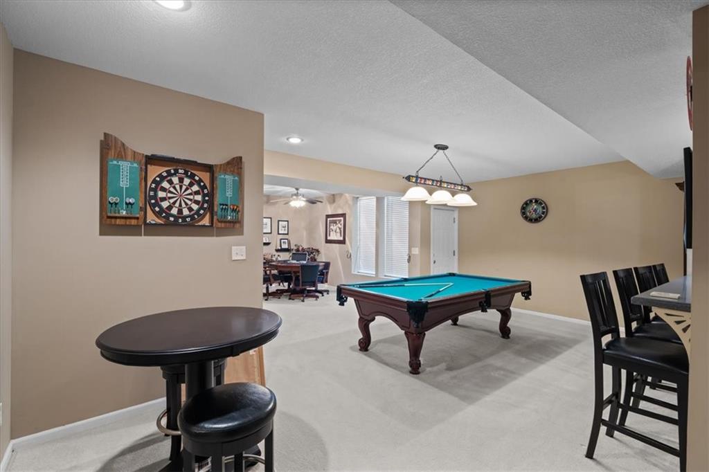 Welcome to Linden! This Dan Smith Spring Tour award–winning home is priced to move and perfectly located in the sought-after Hampton Place neighborhood. Just around the corner from Sunrise Point Elementary, you’ll enjoy easy access to a playground with soccer and baseball fields, a basketball court, and walking trails. Ironhorse Golf Course is less than five minutes away, and the new shops and dining at Bluhawk make this an ideal location. Hampton Place residents also enjoy a large neighborhood pool with lifeguards during the summer months. Inside, the expansive living space seems endless, featuring a formal living room, dining room, family room, walk-in pantry, and an eat-in kitchen. Step outside to the 20x20 patio with pergola—perfect for entertaining or relaxing evenings outdoors. This home offers 4 bedrooms and 4.5 bathrooms, along with recently updated HVAC including an energy-efficient furnace and AC. Three gas fireplaces add warmth and charm throughout. A dedicated office with pocket French doors, built-in bookshelves, and its own fireplace creates the perfect work-from-home retreat. The chef’s kitchen impresses with a 5x6 granite center island, double ovens, and a warming drawer. The primary suite is a true retreat, complete with a fireplace, built-in TV nooks, sitting area, spa tub, double vanities, and a spacious walk-in closet. Bedroom two includes a private ensuite, while bedrooms three and four share a Jack-and-Jill bath with a shower/tub combination. The finished walk-up basement is filled with natural light and offers a full bath, workout room, family room, bar, and gaming area—plus ample storage space. Don’t miss this incredible opportunity to own a stunning home in an unbeatable location!
