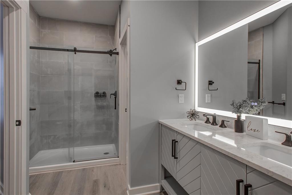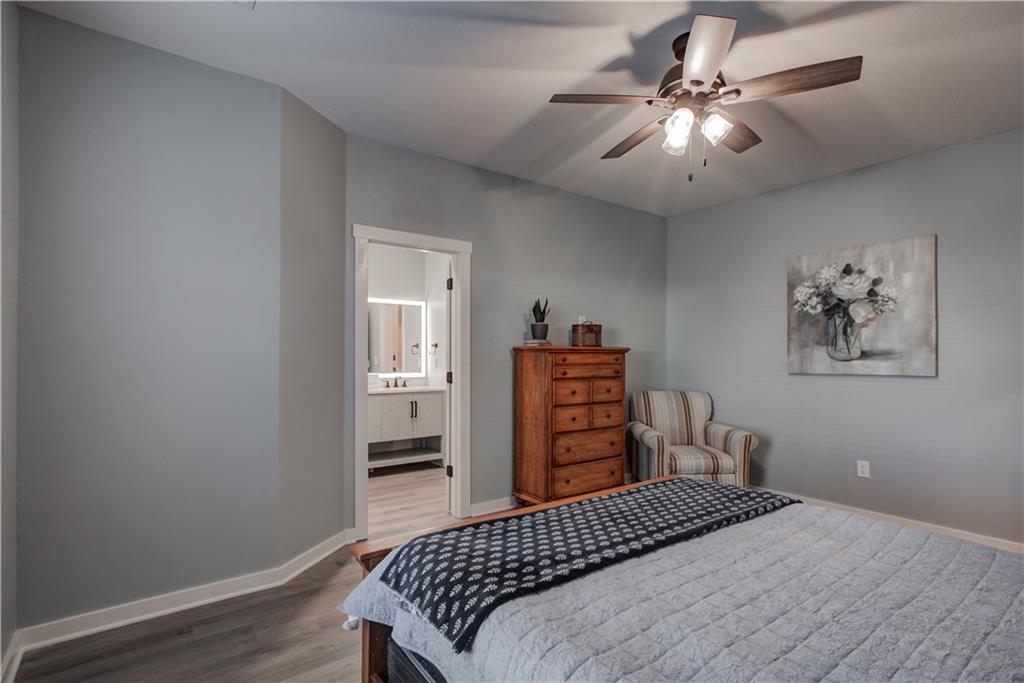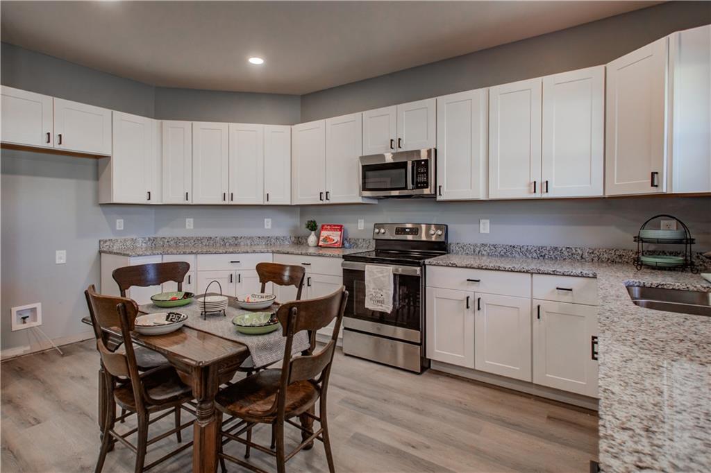 Like-new ranch home featuring an open-concept layout and high-quality finishes throughout. This well-appointed home offers three generously sized bedrooms and two full bathrooms, including a private primary suite designed for comfort, convenience, and security. The primary bedroom features a spacious walk-in closet that also serves as a built-in storm shelter, providing added peace of mind. The primary bathroom showcases a beautifully tiled walk-in shower and double vanities. The kitchen is both stylish and functional, complete with sleek granite countertops, ample cabinetry, and generous prep space—ideal for everyday living as well as hosting family and friends. The open flow from the kitchen into the living and dining areas creates a bright, inviting atmosphere. Enjoy the ease of true one-level living, with all bedrooms, bathrooms, and the laundry conveniently located on the main level. This home seamlessly blends modern design, quality construction, and low-maintenance living, making it an excellent fit for a variety of lifestyles.