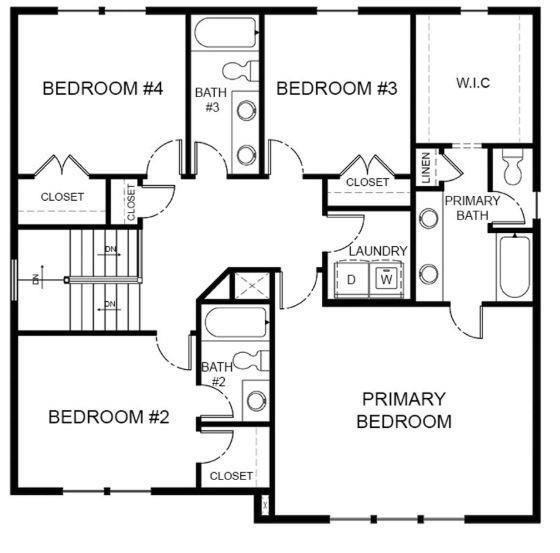 Our Winfield home plan is a beautifully designed 2-story lifestyle home that combines charm with an open and inviting feel, making it perfect for both everyday living and entertainment. The main level features a spacious open floor plan that seamlessly connects the kitchen, dining, and living areas, creating a cohesive space. Additionally, a versatile flex room is strategically located on this floor, offering the ideal space for a home office, study, or additional living area. The second floor houses all four bedrooms, including the luxurious primary suite, which is thoughtfully positioned away from the other bedrooms for added tranquility. The primary suite is a true retreat, featuring a huge walk-in closet and a well-appointed bathroom. The secondary bedrooms are also well-designed for comfort and convenience. Two of these rooms have a full bathroom in between them, ideal for sharing, while the third bedroom has its own private bath, perfect for guests or those who value their own space.