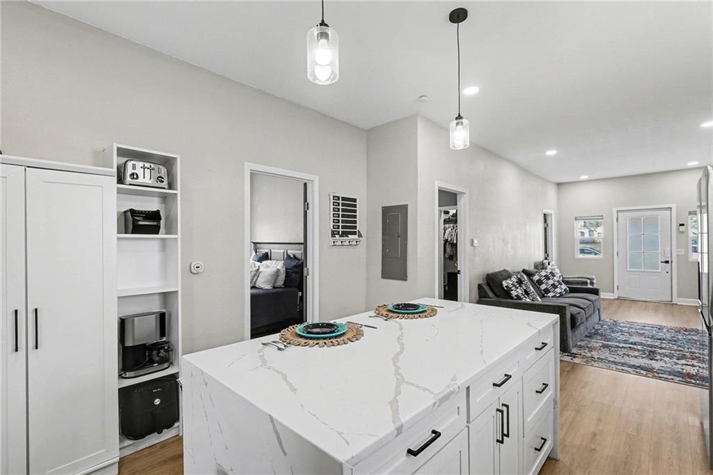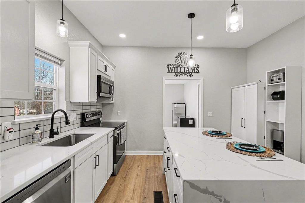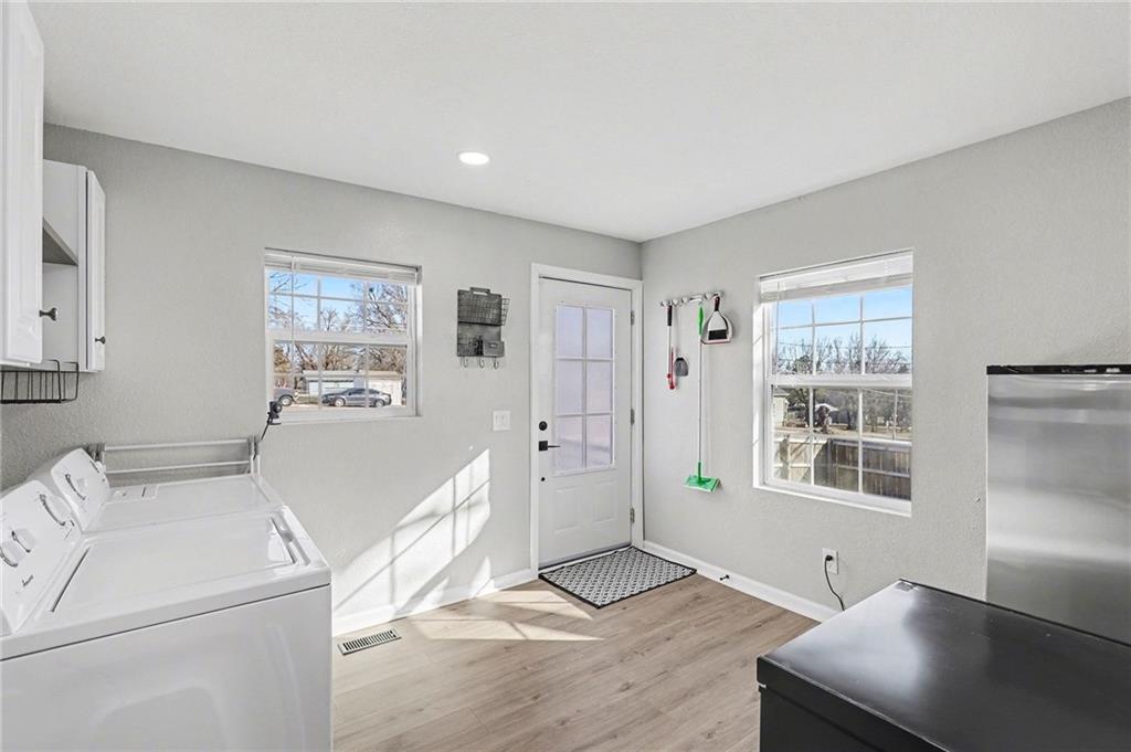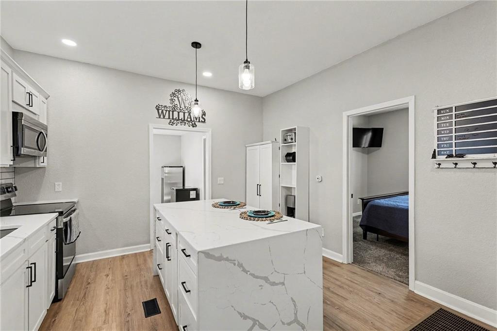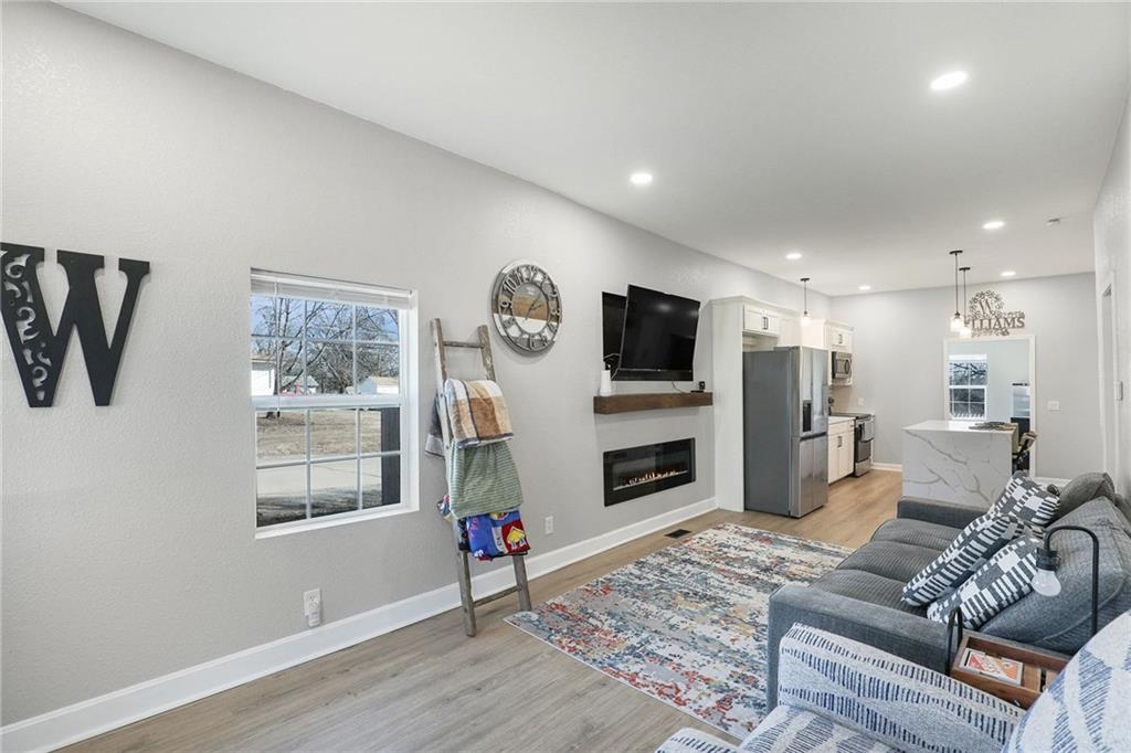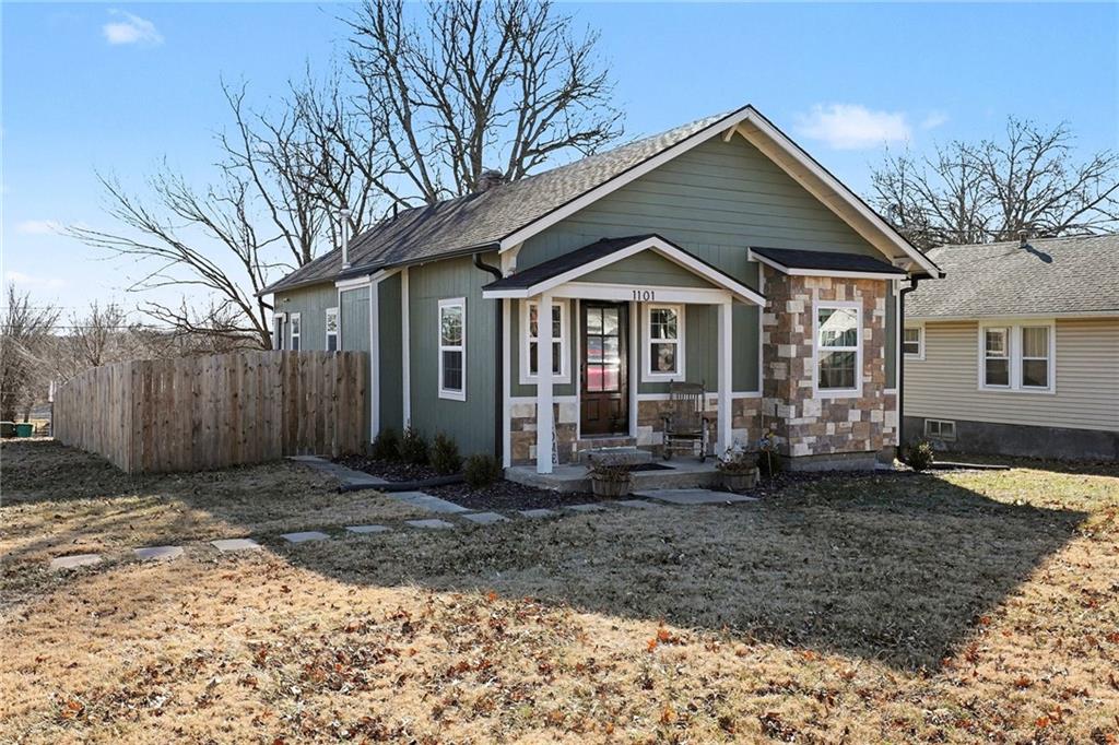 Get ready to say WOW to this wonderfully updated bungalow! Walk inside to an open and airy living area featuring tall ceilings, electric fireplace that produces heat, and high end laminate flooring in a warm wood shade. The three year old kitchen is the perfect place to cook on the stainless stovetop and gather friends around the large island, or take everyone out to the private, fenced yard to roast smores around a fire! A mudroom off the back door is ready for you to throw coats and shoes and there is plenty of additional room to add the storage you require. The primary bedroom features a large walk-in closet with a closet system to maximize space. Even the full bathroom hits all of its marks with a tub and overhead shower, new vanity and fixtures, and classy white subway tile to tie it all together. Osawatomie is a community built on history and nature with many historic landmarks, museums, parks, and trails nearby. You will not regret checking out this lovely home in a classic Kansas town!