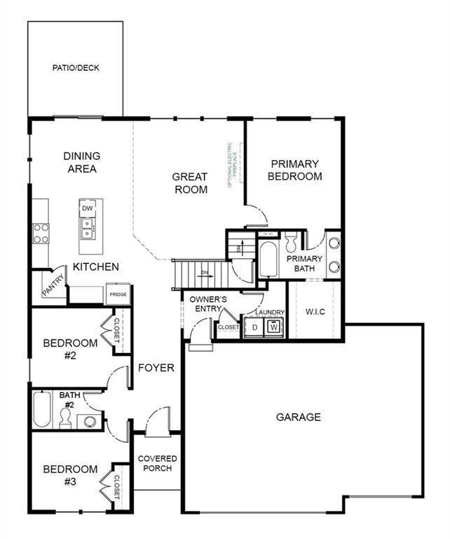 Our Westport home plan welcomes you with a charming covered front porch that leads into a thoughtful layout. As you enter, you’ll find the first two bedrooms and a full bath. The main living area features a seamless open-concept design, connecting the great room, dining room, and kitchen. The kitchen is a highlight, with a spacious island and a walk-in pantry, offering ample storage and counter space for all your culinary needs. The primary suite is situated in a private corner of the home, creating a serene retreat. It includes a large walk-in closet and a well-appointed bathroom, providing both luxury and functionality.