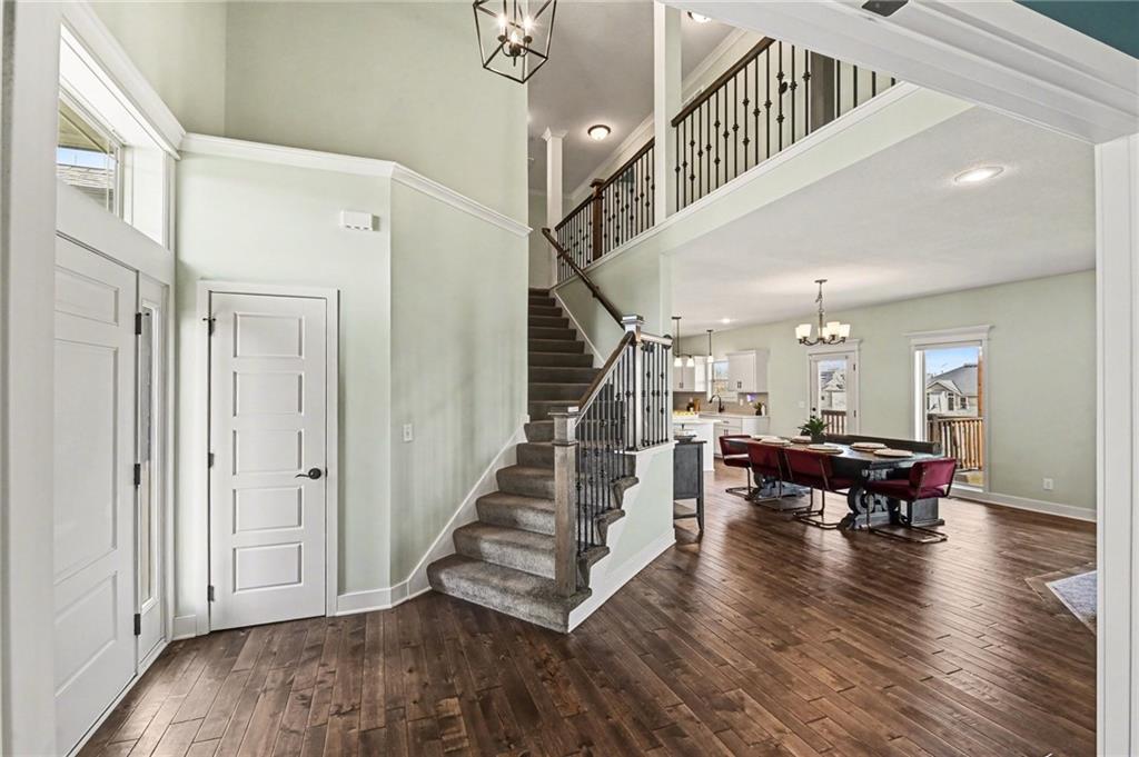 4 bedroom, 2.5 bath Logan Plan by Hoffman Custom Homes in the highly desired Waterford Subdivision within the Staley High School District! This wide-open two-story backs to green space and is filled with natural light. The main level features a spacious kitchen with a large island, granite countertops, walk-in pantry, wide-planked wood floors, and a bright, separate office. Upstairs offers bedroom-level laundry and 4 spacious bedrooms, two with large walk-in closets. The basement is prepped for finishing with electrical completed, insulation installed, abundant windows, and a walk-out to the flat backyard that opens directly to green space. Exterior features include a covered deck, lower patio, level yard, and a large 3-lane driveway with an installed basketball hoop. The neighborhood also offers a community pool for added recreation. A fantastic opportunity to own a better than new Logan plan with high energy package with 95% high efficiency HVAC, Gerken thermopane windows and R-49 insulation in the attic!