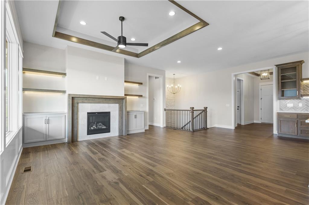 Design selections still available – with estimated completion in August! Sitting on a treed lot in the secluded second phase of Huntford – an established community now offering oversized 85'+ wide lots and adjacent to popular golf course! Low HOA fees and less than 10 minutes from major highways and a short drive to nearby Lake, nature preserves, local winery, and the NEW county trail system! The NEW Fairfield Expanded, by award winning Inspired Homes is derived from the popular Fairfield plan. This 4 bed, 3 bath reverse 1.5 offers main level living with a layout that is functional and convenient. The welcoming entry guides you to the expansive great room with ceiling accents and floor-to-ceiling stone fireplace. The designer kitchen includes custom soft close wood cabinetry, quartz countertops, stainless steel built-in appliances, sizeable walk-in pantry with electrical outlets – perfect for small appliances. The primary suite has ample space for furniture and flows to the primary bathroom, and large walk-in closet that is adjacent to laundry room. The finished basement has a spacious rec room, second fireplace, and wet bar with custom cabinets and lighting, two additional bedrooms and a full bath for family or guests. Designer upgrades throughout the home include custom wood trimmed wall detail, upgraded lighting, plumbing, and carpet, durable RevWood flooring, extra deep garages, 8’ front & garage doors, irrigation systems, garage openers, low-e Pella windows and doors. Come see it today! *Photos depict previous model. Finishes may vary.