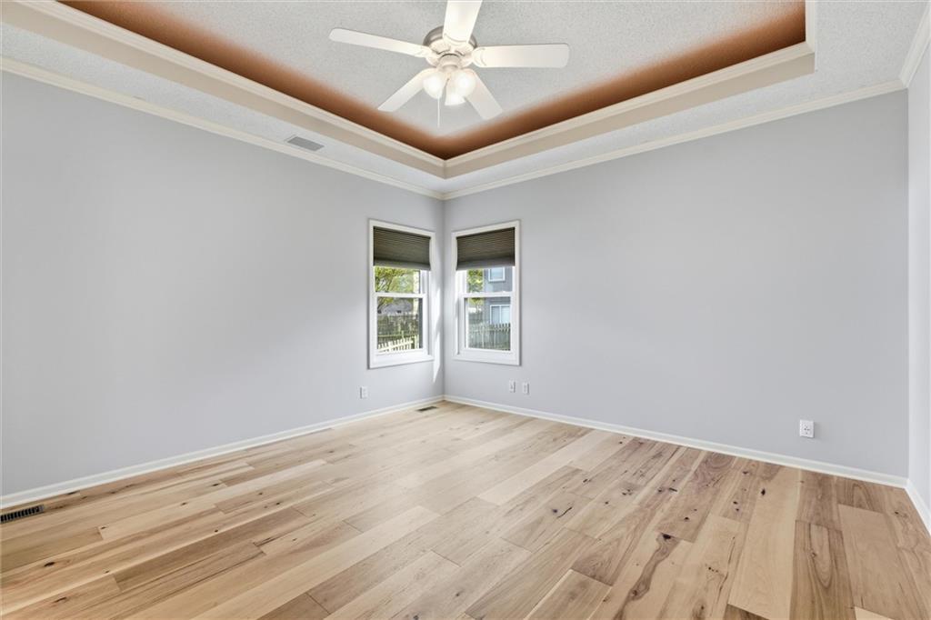 This charming MAIN LEVEL LIVING corner-lot home seamlessly blends timeless character with thoughtful updates throughout. Step inside to discover Vaulted Ceilings, Brand-New Wood Flooring, a Cozy Fireplace, and Floor-to-Ceiling Windows that create a fresh and inviting space. The Open-Concept Dining area is perfect for entertaining guests or enjoying family dinners. Head into the Kitchen, which boasts ample stained cabinets for all your storage needs. The Breakfast Nook is ideal for morning coffee or lively gatherings. Just off the Kitchen, you’ll find the Main-Level Laundry area and easy access to your spacious two-car garage. The Primary Bedroom is spacious w it's own On-Suite w New Tile throughout as well as Walk-In Closet. Explore the Finished Basement, which features another Full Bedroom, Full Bathroom, and Living Room. This home exudes personality, combining a touch of vintage charm with modern elegance and brimming with potential. The Meadows of Winterset offers a Pool and Playground, while nearby Walking Trails, Golf Course, Local Retail Shops and Restaurants, and easy Highway access provide a convenient lifestyle.
