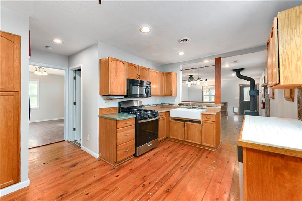 A rare rustic retreat tucked within the city limits of Independence. This distinctive cabin-style home offers the warmth and character of country living with the convenience of an in-town location. Surrounded by a wooded backdrop, the backyard provides a peaceful, private setting ideal for relaxing or entertaining. Start your mornings with coffee on the front porch or in the spacious sunroom. The expansive backyard features a charming red barn wired with electricity, offering excellent potential for a workshop, studio, or additional storage space. Inside, the home offers 4 bedrooms and 2 full bathrooms, accented by rustic wood finishes throughout. The primary bedroom includes its own private bath and his-and-hers closets. The country-style kitchen comes fully equipped with all appliances included. A large family room provides an inviting space for gatherings and features a beautiful wood-burning stove as a focal point. The unfinished partial basement offers room for storage or future expansion. With an existing egress window, the space provides the potential to add a conforming fifth bedroom or additional living area. A one-of-a-kind property offering charm, space, and versatility. This home truly feels like a private retreat while remaining close to everything Independence has to offer. Schedule your showing today!