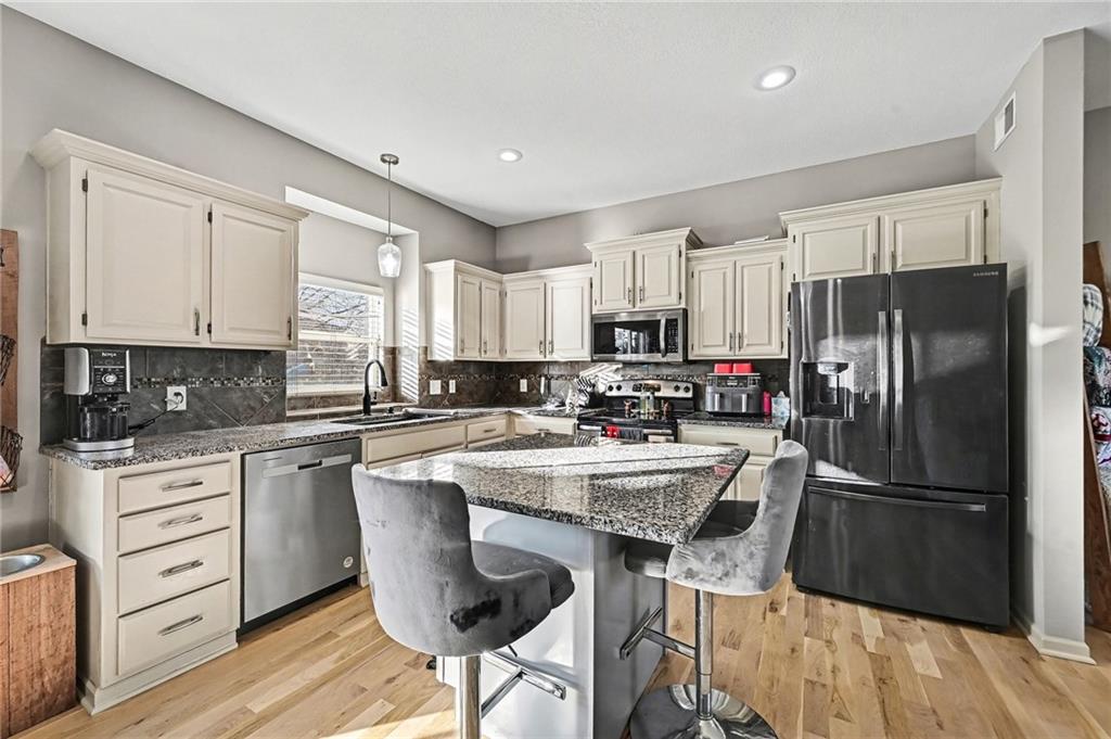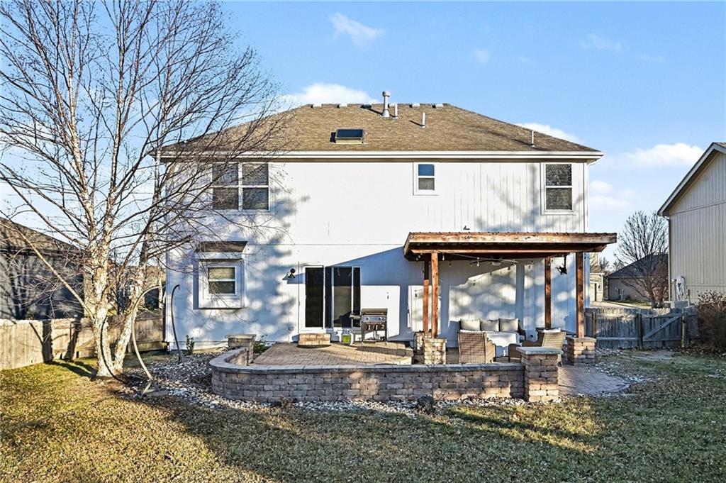 Welcome home to this beautifully maintained 4-bedroom, 2 full and 2 half bath two-story nestled on a quiet cul-de-sac in the highly sought-after Liberty North School District. Ideally located just minutes from major highways, shopping, and dining, this home offers the perfect blend of convenience and neighborhood charm. The main level features newly refinished hardwood flooring throughout the living spaces and a cozy fireplace that anchors the family room, creating a warm and inviting atmosphere. The garage walks directly into the main level, offering everyday ease, and includes a functional drop zone—perfect for backpacks, shoes, and busy lifestyles. Upstairs, the thoughtfully designed layout includes laundry conveniently located on the bedroom level, making daily routines simple and efficient. Generously sized bedrooms provide comfort and flexibility for a variety of needs. The finished lower level with wet bar is ideal for entertaining, movie nights, or hosting friends. Step outside to an awesome backyard retreat featuring a stone patio and pergola, perfect for outdoor dining, gatherings, or relaxing evenings. With a desirable cul-de-sac location, practical upgrades, and an unbeatable school district, this home truly has it all. Schedule your showing today!