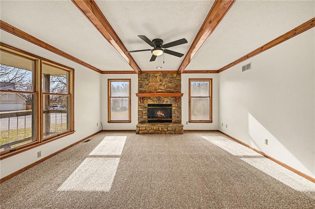 BEAUTIFULLY UPDATED 1.5 story home on .69 acres w/1.2 acre lot next door INCLUDED IN THE SALE! VERY RARE TO FIND ALMOST 2 ACRES IN TOWN!! TURN KEY!! ALL NEW...LVP flooring, carpet, interior paint, stainless appliances, lighting, deck, roof & gutters! MAIN LEVEL LIVING includes PRIMARY SUITE offering large windows, walk in closet & ensuite bath. SPACIOUS GREAT ROOM w/BEAUTIFUL WOOD BEAMS & stone fireplace. The kitchen features TONS OF CUSTOM CABINETS, island, new appliances, new flooring and LARGE DINING SPACE. Main level laundry & half bath. Upper level is perfect for growing families w/2 large secondary bedrooms and large bathroom w/lots of storage. LL is ready for your finishing touches! COVERED FRONT PORCH welcomes you & NEW DECK off the back is great for entertaining! The kids will love the HUGE BACKYARD & 2ND TREED LOT FOR EXPLORING. Shed for convenient storage. Nothing to do here but move in!