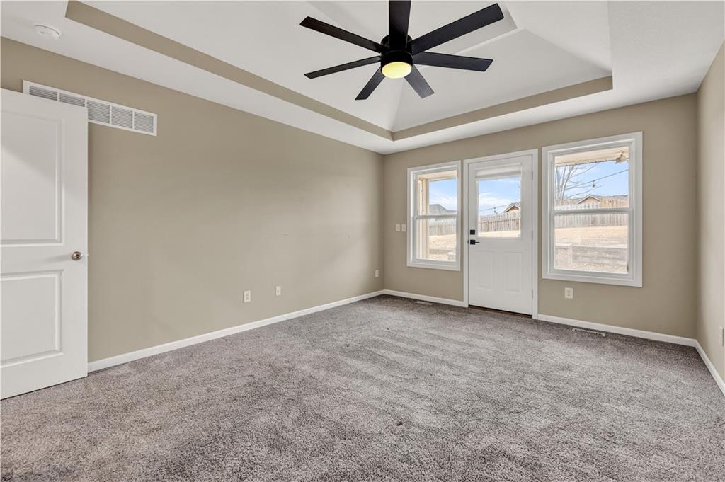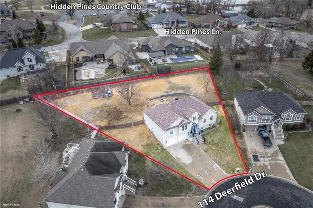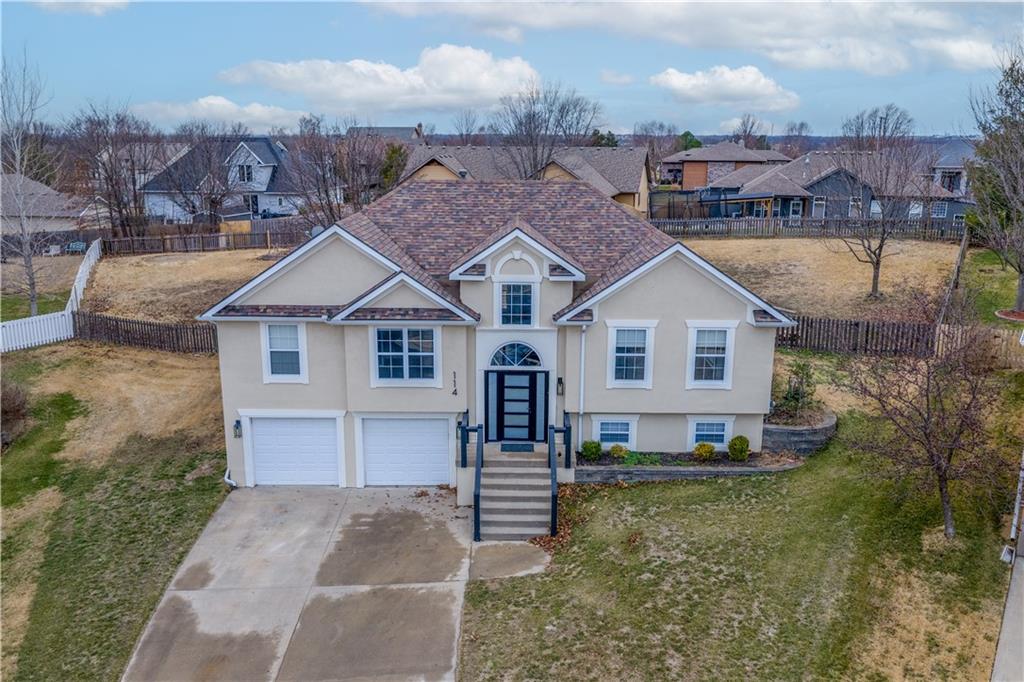 Your new home for the New Year! This exquisite home was extensively remodeled just a couple of years ago. Nestled in a cul-de-sac in the desirable Deerfield subdivision, just a short distance to shopping and restaurants downtown and a 15-minute commute to Whiteman AFB. Coming up the extra wide entry staircase leads to soaring ceilings in the spacious Living Room with a cozy gas fireplace for the chilly days. The breakfast area connects to the stunning Kitchen with gorgeous stone countertops, tile backsplash, stainless steel appliances and a pantry. The dedicated Dining Room is directly nearby. The Primary Bedroom Suite is on one side of the home with direct access out to the back yard patio and a large on-suite Bathroom with vaulted ceilings, double sink vanity, jetted tub, separate tiled shower, and generous walk-in closet. The secondary Bedrooms and Bathroom are on the opposite side of the home. Head to the lower level to the Family Room/flex space with another full Bathroom. The fenced back yard is quite wide with a landscaped patio, fire pit and grill station for relaxation, hosting, and kids/pets to play safely. This is also within walking distance to the Hidden Pines Country Club; join as a member for all access to the golf course and pool! The neighborhood HOA frequently hosts community events, food trucks, and socials. Home is where memories are made...start making new ones in your beautiful home and neighborhood!