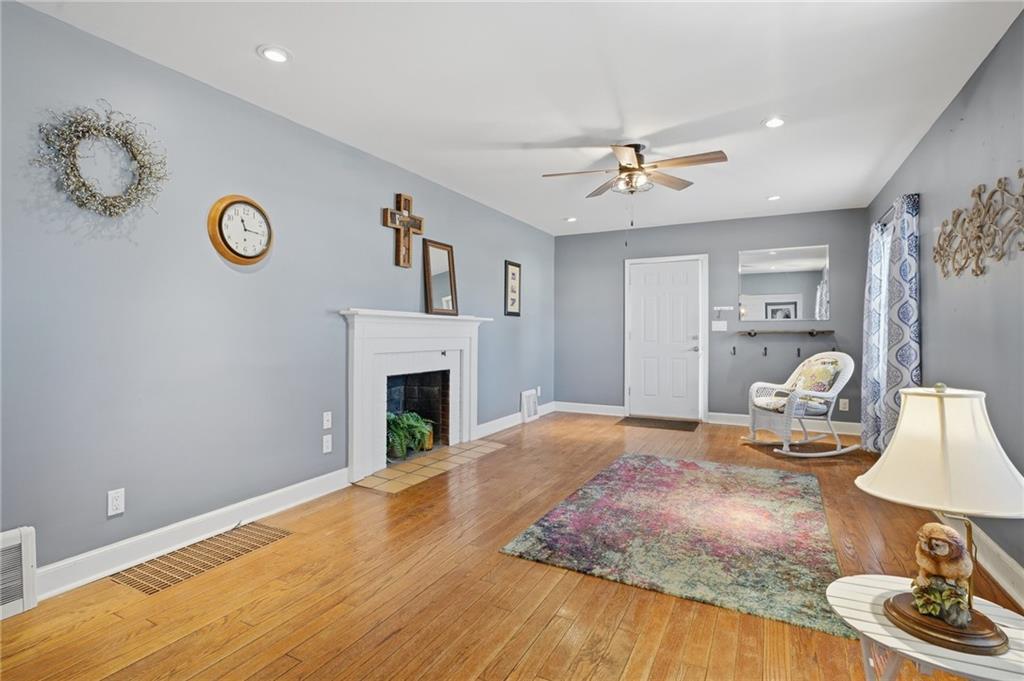 Spacious 3-bedroom, 1-bath ranch offering 1,300+ sq ft of finished living space on a large corner lot in the heart of Richmond, MO. This home features a large living room with a wood-burning fireplace and original hardwood floors throughout, plus a formal dining room and updated kitchen that make everyday living easy and entertaining even easier. The bathroom includes a double-vanity and tiled shower, while laundry hookups both upstairs and downstairs provide flexible living options. Vinyl replacement windows improve efficiency, and ample closet space—plus an unfinished attic area for additional storage. Outside, enjoy a big inviting front porch, along with a spacious fenced yard, deck, and concrete patio—perfect for relaxing or hosting friends. Conveniently located in town with quick access to the highway and close to shopping, dining, and schools. This one checks all the boxes.