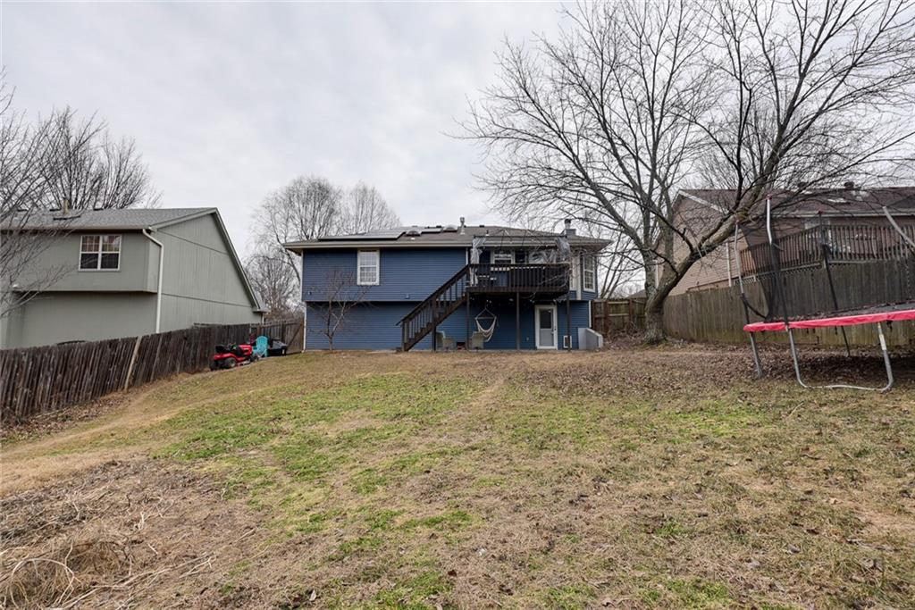 Welcome HOME to this spacious and sun-filled 3-bedroom, 2.5-bath beauty tucked away on a quiet cul-de-sac in the highly sought-after Blue Springs School District. Designed for both comfort and connection, this home features FRESH PAINT and thoughtfully laid-out main level with laundry conveniently located near all bedrooms and a generous primary suite complete with an en-suite bath and ample closet space. All bedrooms are well sized, offering room to grow, relax, and recharge. Natural light pours through large windows throughout the home, creating a bright and inviting atmosphere from morning to evening. The spacious dining room flows seamlessly into the light-filled living room and warm, welcoming kitchen, making it ideal for lively family gatherings and unforgettable conversations.The large high deck adds even more space for family and friends to enjoy the outdoors. Downstairs, enjoy a large second family room, a dedicated home office, and a walkout to the expansive, fully fenced backyard—perfect for entertaining, playtime, or peaceful evenings outdoors. Step outside to the large covered patio, extending your living space even further. The large fenced in yard gives ample space for kids and pets to safely run. This HOME is as SMART as it is Beautiful, featuring 13 solar panels for incredibly low electric bills and a reverse osmosis water system delivering clean, crisp, great-tasting water every day, not to mention some updates and fresh paint through the home. Location is hard to beat—walking distance to the elementary school, just a block or two from multiple parks and soccer fields and walking trials and minutes from dining, shopping, and entertainment, and quick highway access while still feeling tucked away in a hidden neighborhood. A RARE blend of space, efficiency, location, and lifestyle—this is the kind of home where MEMORIES are made and futures are built. COME CHECK IT OUT TODAY!!!