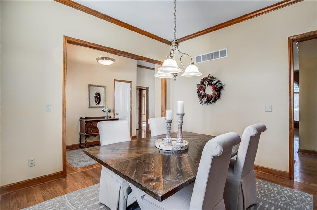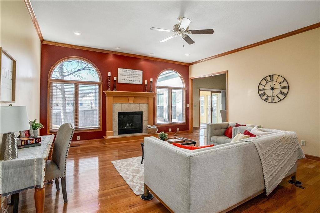 This charming brick front ranch welcomes you with timeless curb appeal, a covered front porch, and a gently elevated lot with a retaining wall that adds character and presence. Inside, the home opens to a spacious living room highlighted by hardwood floors, crown molding, arched windows, and a cozy fireplace that anchors the space beautifully. Natural light pours in throughout, creating a bright and comfortable feel. The layout offers easy main-level living with well-sized bedrooms, neutral finishes, and thoughtful details throughout. A sun-filled porch provides the perfect bonus space for relaxing, reading, or enjoying views of the backyard year-round. The laundry room is conveniently located and features ample cabinetry and workspace. Out back, enjoy a fenced yard with mature trees and a deck ideal for entertaining or quiet evenings outdoors. The oversized two-car garage offers generous storage and functionality. Well maintained and move-in ready, this home blends classic style with everyday comfort in a setting you’ll love coming home to.