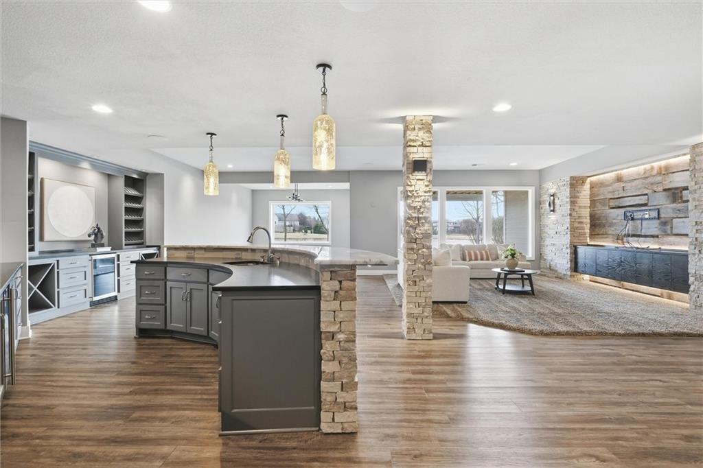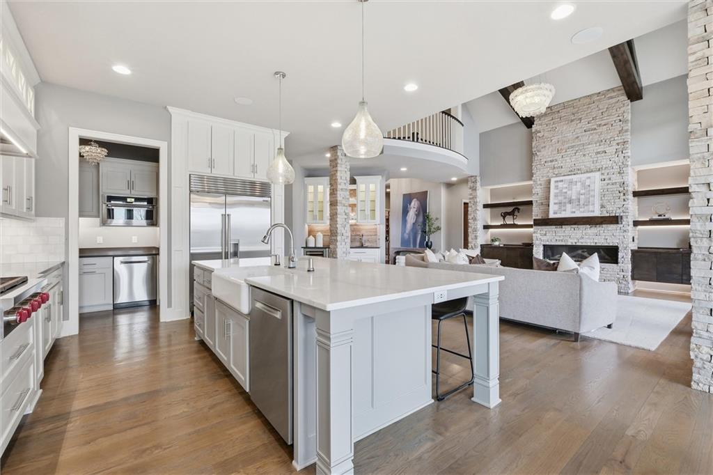 Paradise Found! Where Every Day Feels Like a Private Retreat. Welcome to 16121 Paradise Street, a waterfront sanctuary nestled in the heart of Overland Park’s prestigious Mills Farm community. From the moment you step inside, you’re greeted by sweeping views of the tranquil pond and a layout designed for both grand entertaining and intimate moments. Thoughtfully updated and move-in ready, this 1.5-story masterpiece offers over 7,000 square feet of curated luxury: • A chef’s kitchen with double islands and hidden pantry • Hearth room with fireplace and water views • Main-level primary suite with spa bath • Lower-level theater, game room, and full bar—your personal entertainment wing • Custom aquariums that double as living art •Outdoor living spaces that rival resort settings, complete with fire features and lush landscaping Whether you're hosting sunset soirées or enjoying quiet mornings with coffee by the water, this home delivers a lifestyle that’s as elevated as its design.