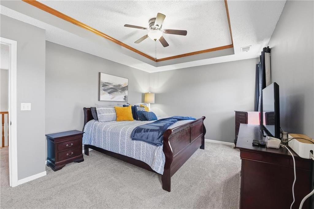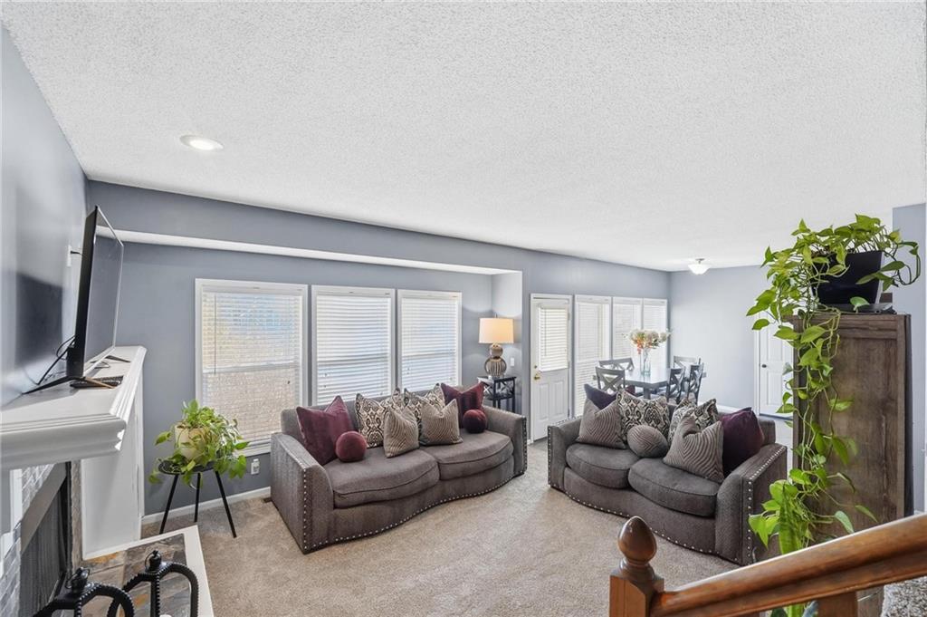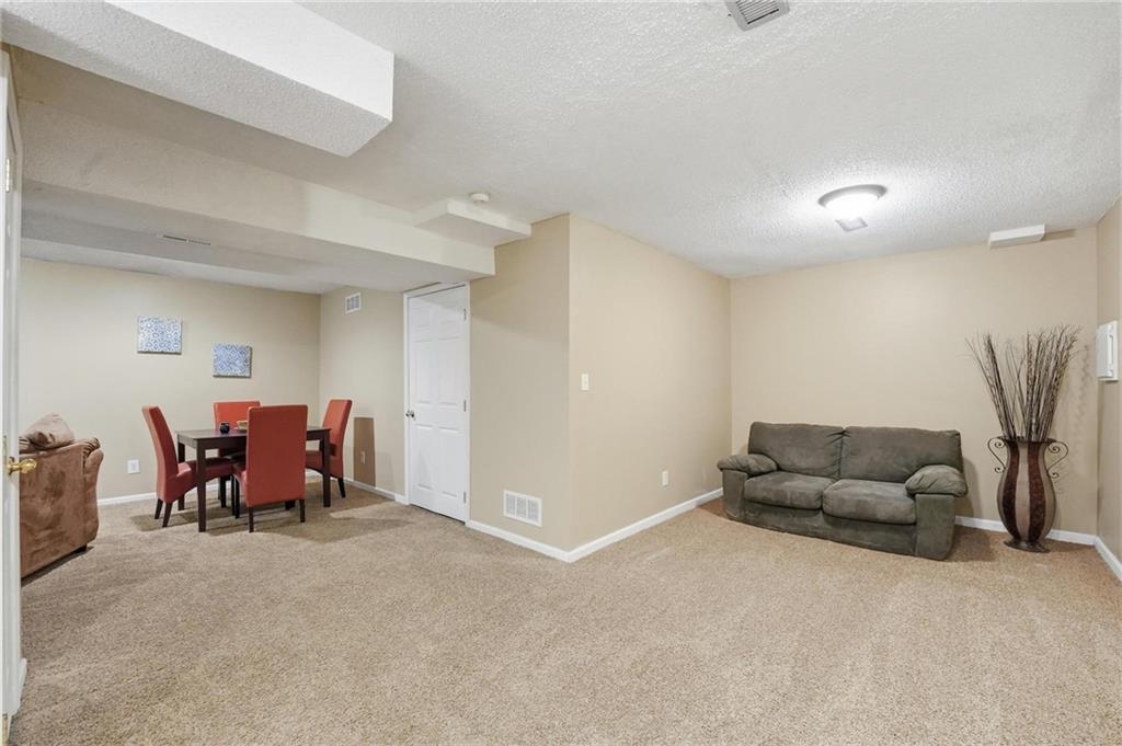 Fall in LOVE with the Stonehurst community! This inviting two-story offers three levels of living space and is filled with natural light. Featuring 3 bedrooms and 2.5 baths, brand-new carpet, newer HVAC, new fixtures, and a professionally painted interior! The entry opens to hardwood floors and elevated ceilings, airy and open. The main level is designed for both daily living and entertaining, with a formal dining room, a convenient half bath for guests, and a comfortable living room highlighted by built-ins and a cozy fireplace. The kitchen features rich dark cabinetry paired with stainless steel appliances, granite countertops, and a stone backsplash, with a spacious laundry room conveniently located just off the kitchen. Upstairs, the primary bedroom offers a relaxing retreat with a tray ceiling and ceiling fan. The en suite bath includes a granite vanity and a walk-in closet with built-in shelving. Bedrooms two and three are generously sized and share a full bath. The lower level living area provides additional flexibility—ideal for movie nights, game space, or work-from-home needs—along with a separate room for storage or creative use. Step outside to a generous backyard with a concrete patio, perfect for evenings outdoors, entertaining, or simply unwinding. Conveniently located near parks, restaurants, shopping, and major interstates, this home offers suburban comfort with everyday accessibility and represents an exceptional opportunity in a desirable community!