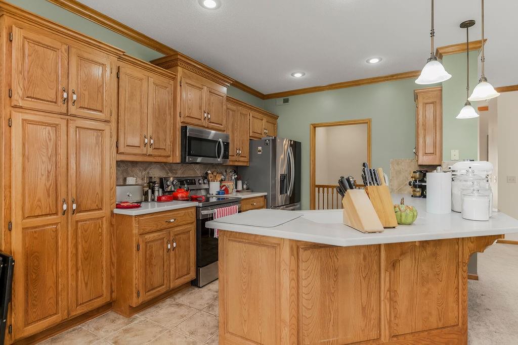 This beautifully maintained, second-owner custom home offers thoughtful design, extra living space, and an unbeatable location in the highly sought-after Cardinal Woods 55+ neighborhood. The main level features 2 spacious bedrooms, including a primary suite with a large walk-in closet and a tiled master bath. The kitchen boasts solid-surface countertops and an expanded dining area, perfect for everyday meals or entertaining. The walkout lower level provides 2 additional bedrooms and a generous family room, along with approximately 720 sq. ft. of unfinished space for storage, hobbies, or future customization. Unique to this property, the garage is suspended—creating a rare and versatile storage or workshop area beneath it. In total, the lower level offers 1,094 finished sq. ft. plus the unfinished space. Enjoy the benefit of a new roof! Furnishings are negotiable to stay. Nestled on a quiet block, this home offers not just comfort but also a true sense of community. Don’t miss the chance to make it yours!