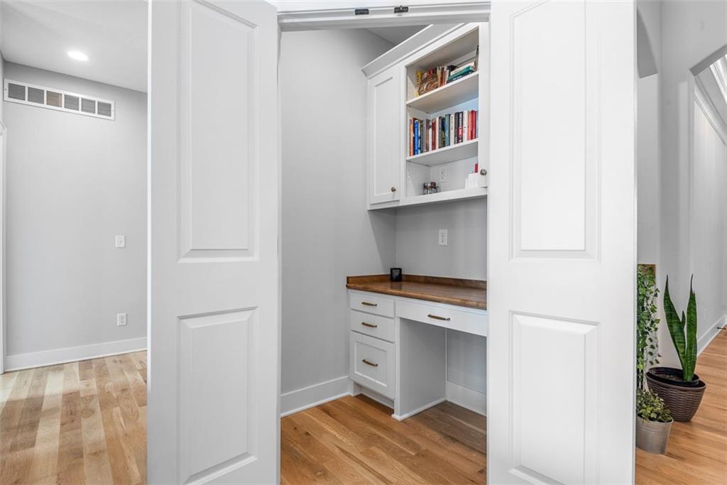 Beautiful, large bedrooms 4 + 1 (non-conforming) = 5 possible bedrooms, 3 bathrooms, Reverse 1.5-story home with 2 walk-in closets in Primary Bedroom! The open main level seamlessly connects the kitchen, dining, and living areas, showcasing hardwood floors, vaulted ceilings, updated trim, and abundant natural light. The gourmet kitchen is a chef’s dream, featuring quartz countertops, tile backsplash, gas cooktop, large walk-in pantry, and generous workspace—perfect for entertaining. Family Room stuns with a floor-to-ceiling fireplace, vaulted ceilings accented by wood box beams, designer ceiling fan, and custom window coverings. An office tucked to the side offers the perfect private workspace. The Primary Suite is a true retreat with vaulted ceilings, a luxurious stand-alone soaker tub, separate tiled shower with dual shower heads, two vanities, and again TWO walk-in closets. The main-floor laundry offers convenient direct access from the primary closet. The finished lower level provides a spacious rec room, already stubbed for a future bar, along with three additional bedrooms (one non-conforming), a full bath, and plenty of storage space. Relax and enjoy your morning coffee on the screened-in covered deck. Brookwood Farms is an active, social community offering amenities for all ages, including a community pool and cabana, playground, fishing pond, and walking trails. Come see everything this beautiful home—and Brookwood Farms—has to offer!