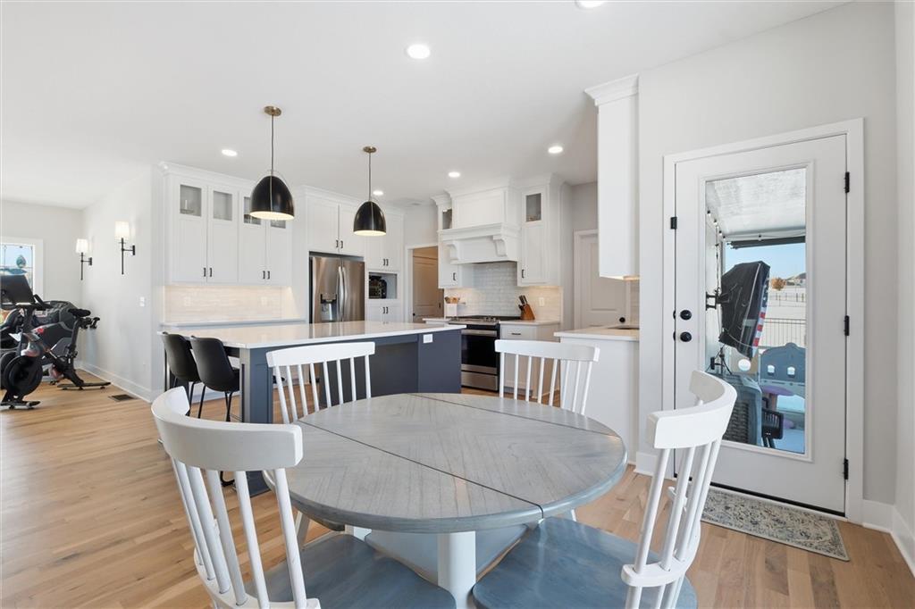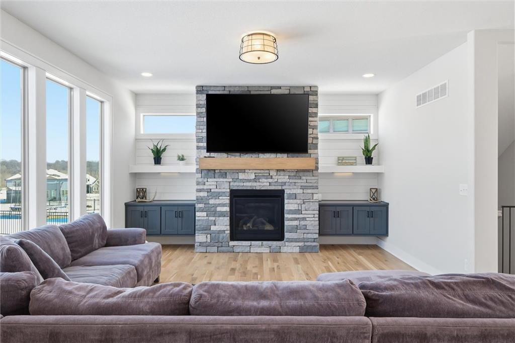 WELCOME HOME to this beautiful, like-new two-story home located in the highly sought-after Woodland Trails subdivision in Greenwood, MO! From the moment you step inside, you’ll fall in love with the open floor plan and abundant natural light that fills every room. This spacious home offers 4 bedrooms, 3 full baths, and 2 half baths, along with a 3-car garage and a finished basement, providing plenty of room to spread out and live comfortably. The exercise room located in basement is just another bonus, but could easily be turned into another bedroom!! The main level features a versatile additional room perfect for a home office, homeschool space, or flex room to fit your needs. You’ll appreciate the thoughtful design throughout, including second-floor laundry, a walk-in pantry, a massive kitchen island, and a cozy fireplace ideal for gathering. Step outside and enjoy your screened-in porch, the perfect spot for morning coffee or entertaining guests. The spacious, fenced backyard offers plenty of room for play, pets, and outdoor fun and even includes a private gate with direct access to the neighborhood walking trails. Enjoy the peace and privacy of Woodland Trails, a quiet community offering scenic walking trails, neighborhood amenities, and a relaxed setting while still just a short drive from everyday conveniences. This is truly an AMAZING home you don’t want to miss!! Schedule your showing today and come experience all it has to offer!