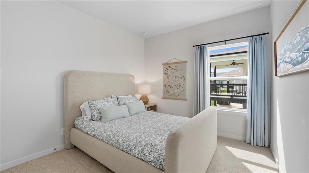 The Reagan is a ranch plan featured at Prairie Trace. This is a spacious and modern home designed with open-concept living carefully considered throughout. This home features four bedrooms, three and a half bathrooms, finished basement and a three-car garage. An inviting foyer greets you upon entering and leads you into the heart of the home. This open plan features a family room, dining room, and kitchen designed with entertaining in mind. The kitchen is equipped with a pantry, 36" cabinets with crown molding, quartz countertops with tile backsplash, stainless steel appliances, and a large island with a breakfast bar, making it perfect for both dining and guests. The luxurious primary suite offers a large walk-in closet and a primary bathroom with dual vanities and plenty of space to get ready. The additional two bedrooms share access to the secondary bathroom on the opposite side of the home offering privacy from the primary suite. With its thoughtful design, this ranch floorplan is the perfect place to call home at Prairie Trace. Pictures are representative.