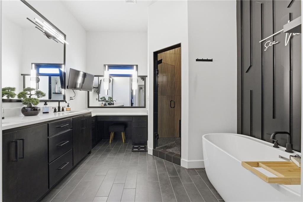This beautiful nearly new 2 story has it ALL! Immaculate and stylish with high end finishes and GORGEOUS inside and out! The home is loaded with upgrades! You'll love the soaring high ceilings as you step into the Great Room with custom lighting, tons of natural light from oversized windows, and a unique floor to ceiling fireplace with built ins. Quality hardwood flooring runs throughout the main level. The fully equipped kitchen boasts bright white quartz countertops, rich, dark custom cabinetry, indirect lighting, and high end appliances, including a gas cooktop. The kitchen island is massive with plenty of room for entertaining. The kitchen also has a large walk in pantry, as well as a convenient second pantry closet. The upper level has 3 bedrooms, including the stylish primary bedroom with onsuite bath, offering all of the comforts you would expect. The lower level provides plenty of additional living space including a spacious family room with wet bar, game room, the fourth bedroom, and full bath. Additionally there is a generous unfinished storage area. Step out of the large, oversized sliding glass doors in the Great Room and enjoy the peaceful and secluded outdoor space of this home, featuring a huge 20 X 10 covered deck, along with a retractable awning to offer even more shade and comfort. Relax in the 6 person hot tub, which stays with the home. You’ll love the view of the scenic oversized pond just beyond the backyard, complete with walking trails as well as fishing. Monticello is a beautiful newer single family community in Lee's Summit with trails, a pool, and ponds near Fleming Park. Enjoy all the services and amenities this neighborhood has to offer.