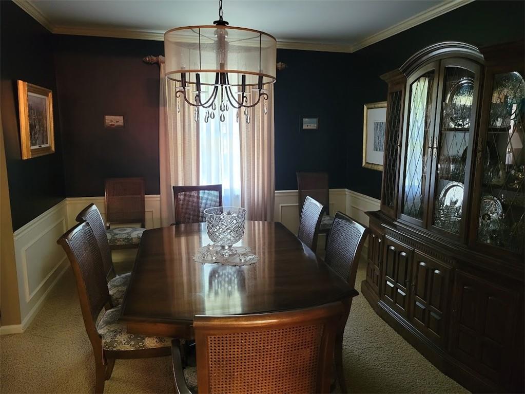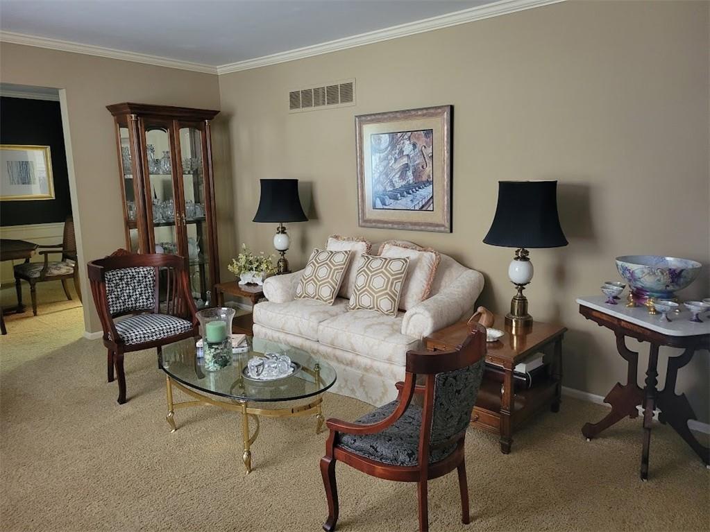 Welcome home to this beautifully maintained and continually updated 3-bedroom, 2+ bath ranch offering over 2,000 square feet of comfortable living space with minimal steps for easy accessibility. Inside, you’ll find crown molding throughout and stunning birch hardwood plank flooring that adds warmth and timeless style. The well-designed layout includes a spacious primary suite featuring two closets, one being a walk-in with exceptional storage, and a dedicated dressing area. The spacious kitchen features an inviting eating area, plenty of cabinets, and a walk-in pantry, opening to a cozy family room with a fireplace—ideal for unwinding at the end of the day. A formal living and dining area provides the perfect setting for larger family gatherings and special occasions. The partially finished basement expands your living and entertaining options with a built-in bar—perfect for gatherings or relaxing at home. An oversized garage provides ample room for vehicles, storage, or hobbies. The home has been thoughtfully cared for, with all appliances included—highlighted by a newer refrigerator—making it truly move-in ready. Outside, the circular driveway, lush landscaping, and full sprinkler system (front and back) create striking curb appeal. Enjoy outdoor living on the brick paver patio, surrounded by a classic wrought iron fence. This home offers the ideal blend of space, updates, and charm—ready to welcome its next owner.