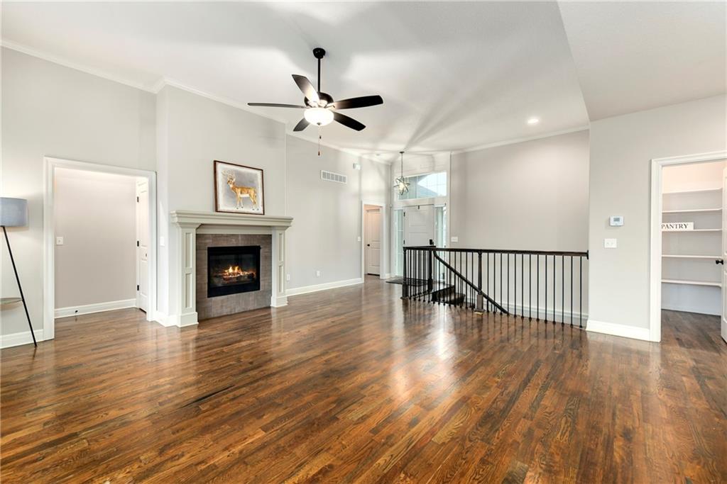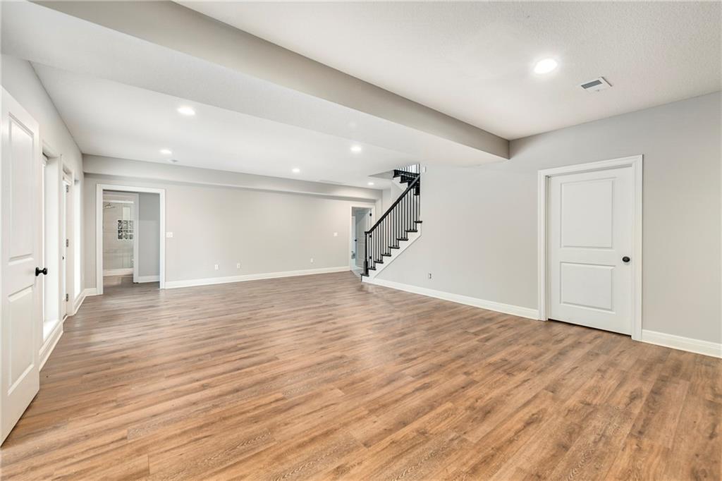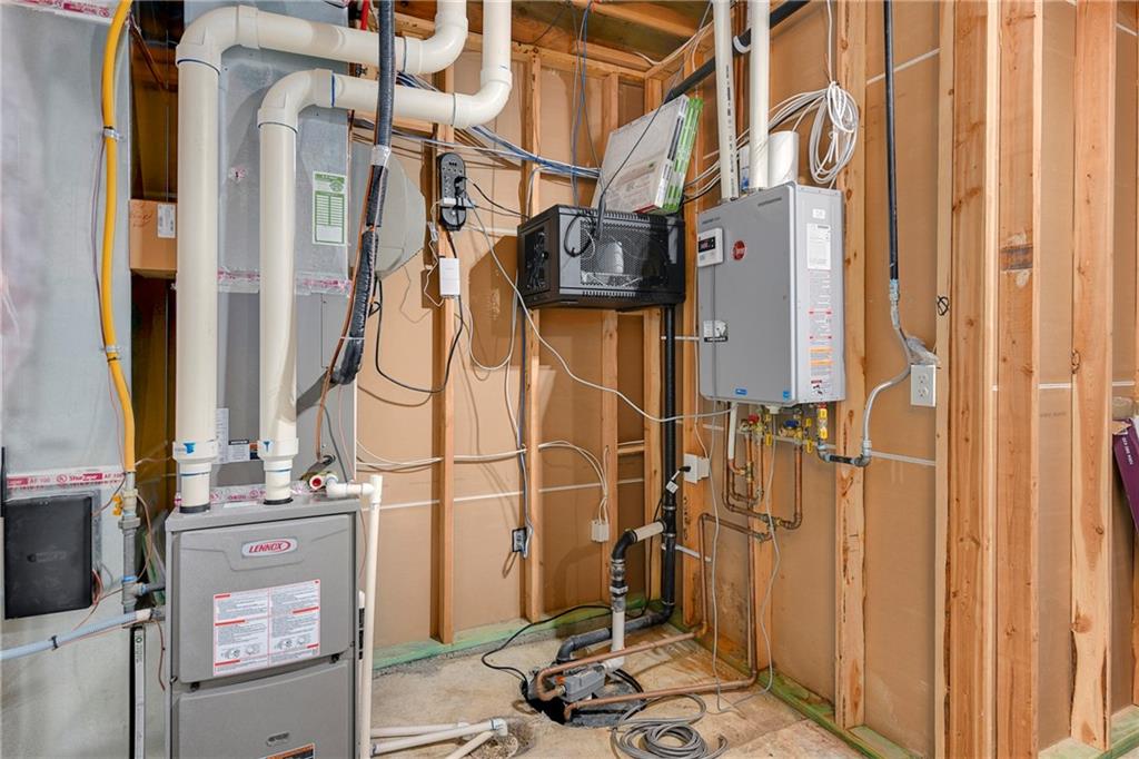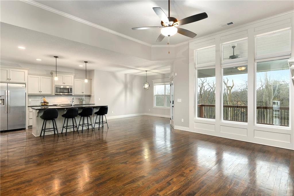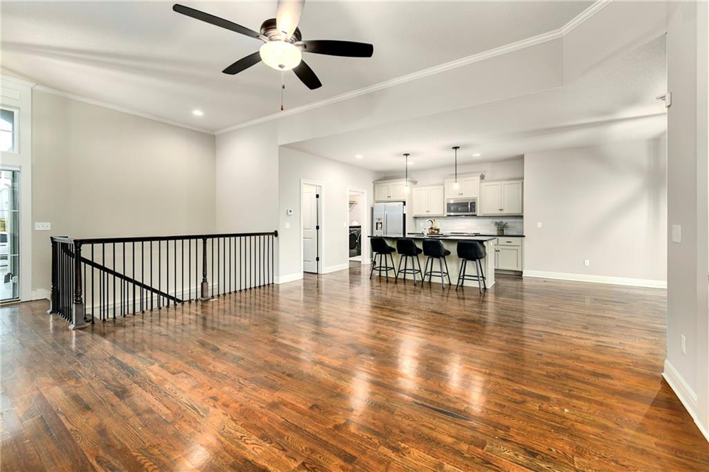 This stunning reverse 1.5-story home is nestled on an oversized lot backing to lush, mature trees—offering privacy and serene views. Enjoy outdoor living with a private balcony off the main living room and a spacious patio from the finished walk-out basement. On the main level you will enjoy hardwoods and tile, an open kitchen, dining room, and living room, along with a bathroom, deluxe bedroom, master bedroom suite, laundry room, and garage. On the lower level, you will enjoy LVP flooring, a full bathroom with a walkin shower, a partial kitchen, tons of storage, 2 true bedrooms, and another bonus room for whatever your heart desires (it is currently being used as a small 5th bedroom without a closet). The home includes three oversized garages, perfect for extra storage or a workshop. Lovingly built by its original owners as their forever home, no detail was overlooked—many thoughtful upgrades were added throughout, including tankless water heater, whole home water filtration system, jellyfish lighting, a black metal fence, epoxy floor coating and a separate heat/air unit in the garage. Located in a wonderful community with access to a fantastic pool, this home truly has it all! Welcome Home.