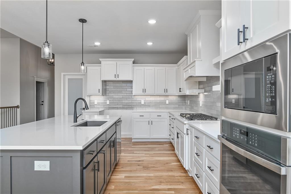 The popular Rose by Stone Creek Custom Homes has a new look in this Rose 2.0 on a large lot!! All of the great features of the original Rose with a new front face. Soaring Ceilings in the great room, stone fireplace, hardwood floors and lots of natural light. The kitchen has a HUGE island, tons of cabinet and counter space with soft close doors/drawers, gas range, and wall oven. The pantry is expansive with ample storage and counter space for small appliances. The primary bedroom on main floor is spacious with beautiful ensuite bathroom and closet conveniently located next to laundry room. This home is on a daylight lot and has a covered composite deck with stairs. Upgraded 50 year hail resistant roof and 4' metal fence included!! Estimated completion is spring 2026 - call listing agent with questions. Some pictures of previously completed home of same plan.