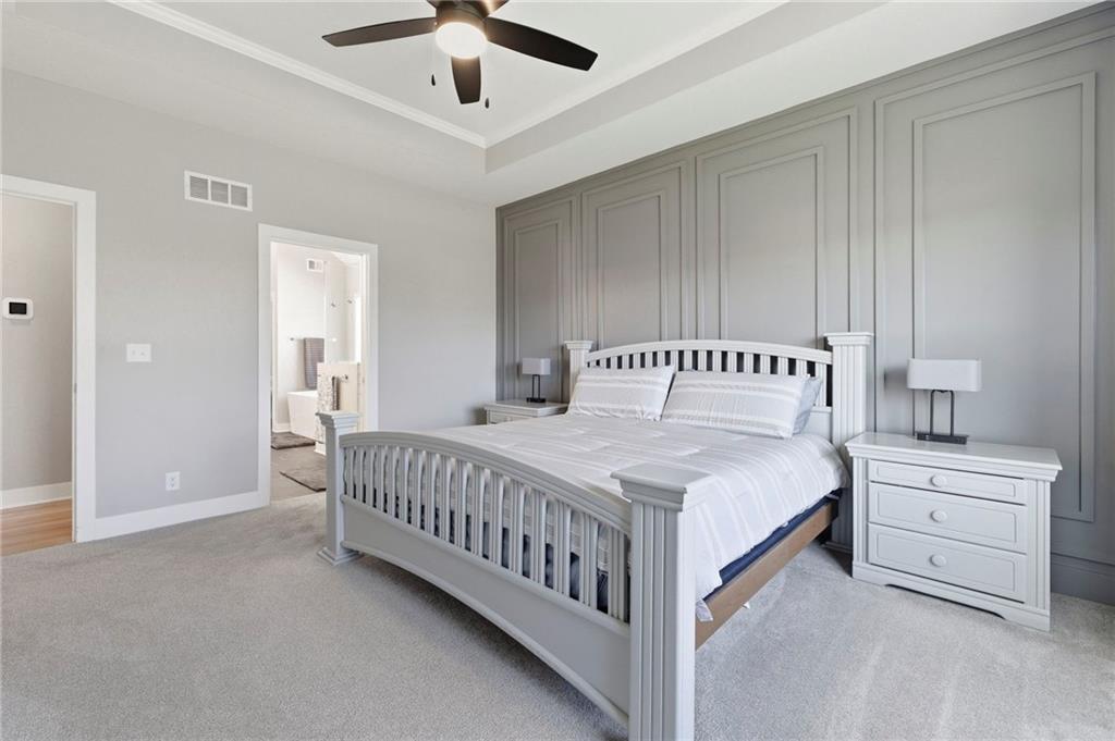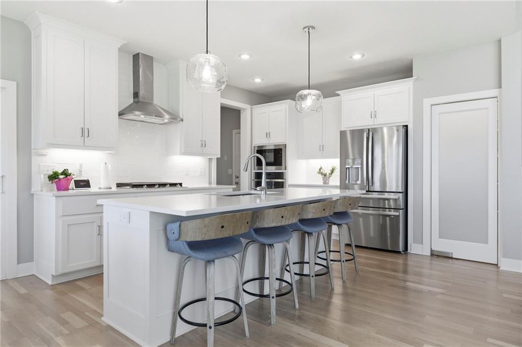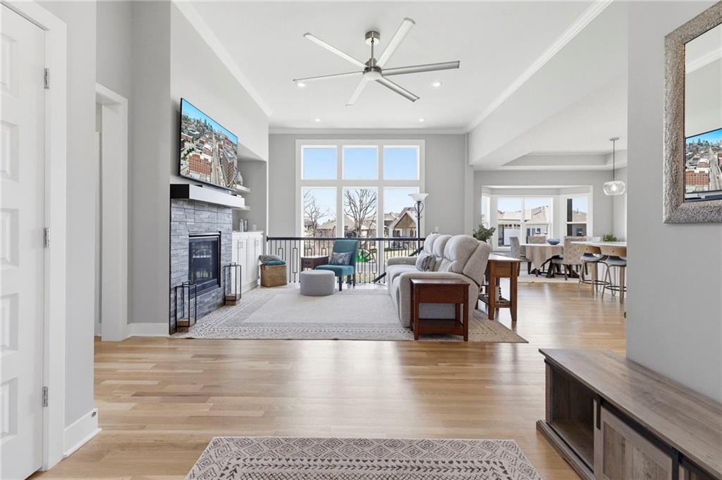 Unicorn alert! MULTI-GEN ON GREENBELT! Boulder Hills fully finished walkout lower level built for multi-generational living, backing to a gallery forest greenbelt, loaded with seller upgrades, and Timber Sage Elementary right out your front door. Separate quarters downstairs means parents, adult kids, or long-term guests get their own world: two bedrooms, full bath, 7-ft wet bar, and private walkout entrance. Upstairs, the main level delivers a dramatic stone fireplace, wall of windows framing the trees, quartz kitchen island, screened deck, and a main floor primary suite with soaking tub and double vanities. Seller upgrades that set this apart: epoxy garage floors, garage sink, second opener, built-in shelving & workbench, extended deck with backyard steps, active radon mitigation, and metal fencing with 3 gates. Boulder Hills amenities include clubhouse, party room, pickleball, putting green, pool, playground and trails, all anchored by one of the best greenbelt lots in the subdivision. Impeccably maintained. Truly move-in ready. Greenbelt lots with this layout and these upgrades do not come up twice. Information deemed reliable but not guaranteed. Buyer to verify all information.