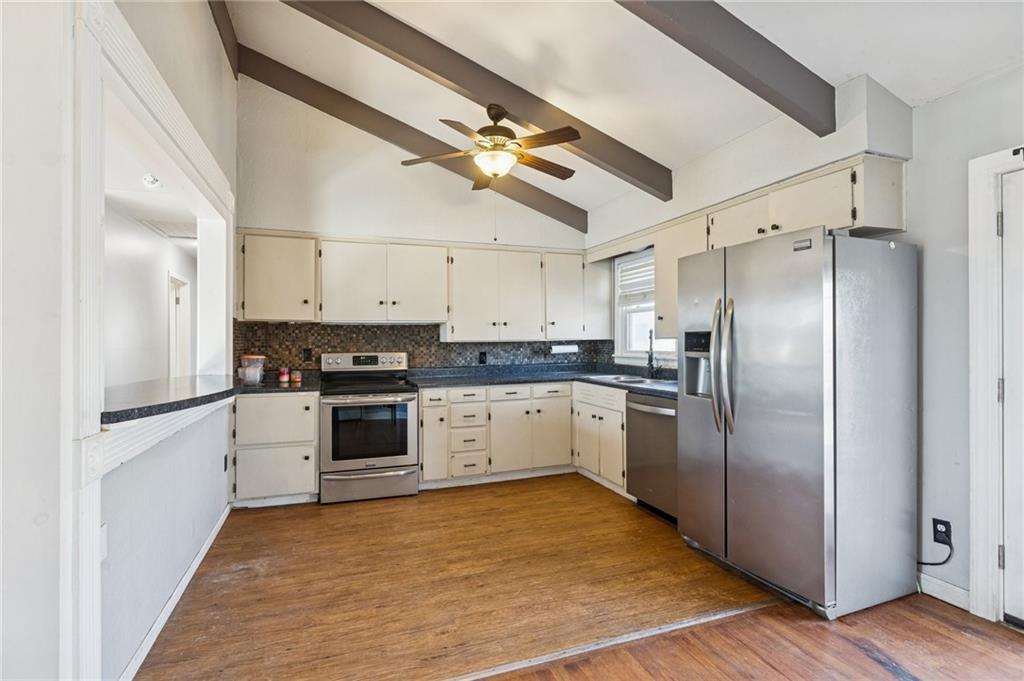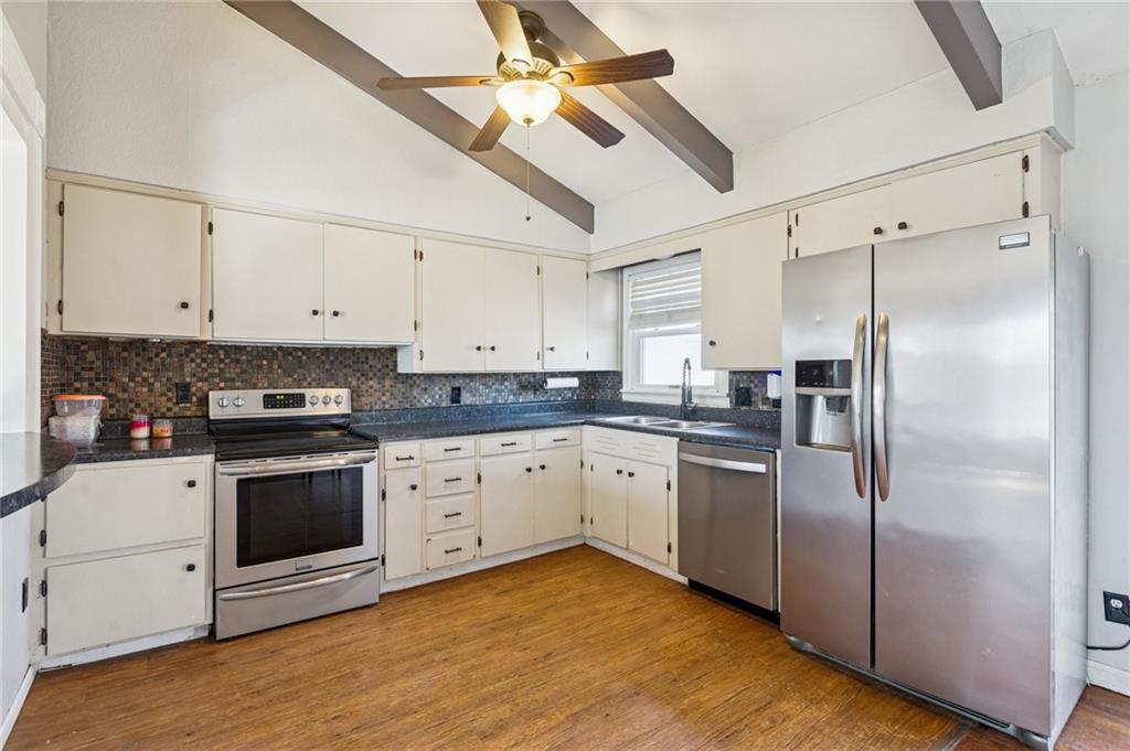 Mid-century charmer priced below market value! Featuring hardwood floors, vaulted ceilings, and timeless mid-century style. This home offers warmth and character from the moment you step inside. The open main living area connects seamlessly to the kitchen/dining area; feeling open and airy. The full basement is already framed for build-out, creating an easy opportunity to expand your living space and build instant equity. A one-car garage adds convenience, and the back deck overlooks a spacious yard — ideal for entertaining or relaxing outdoors. Located in the strong, appreciating neighborhood near the brand new Greenway Elementary School and the scenic Lakewood Greenway, (Penguin Park!) ….the area continues to see positive growth and community investment. A sewer scope has been completed and is available for review. The line is currently functioning properly, with replacement recommended in the future. The home has been strategically priced below market to reflect this, offering buyers a rare opportunity to purchase with built-in value and plan improvements on their timeline. Move in comfortably today and update strategically tomorrow — all while gaining equity in a prime location.