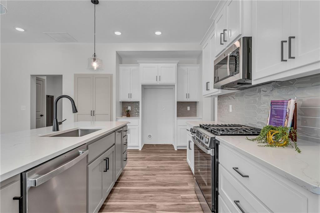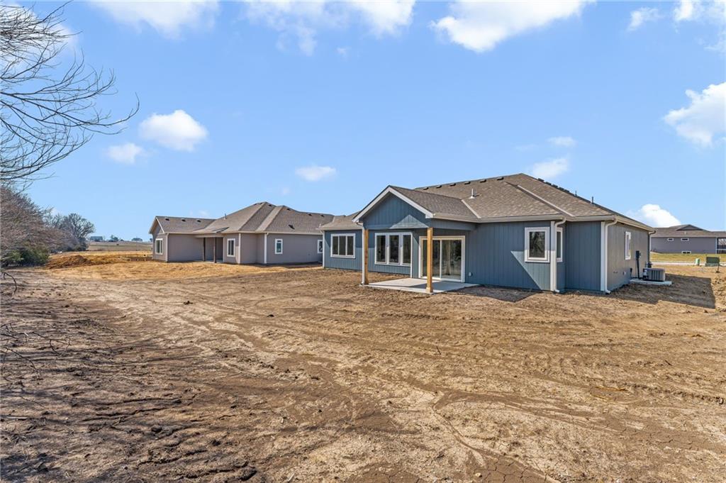 Address is NOT mapped, see directions!!! The Bridgeport floorplan built by Drippé Homes. Open concept daylight basement with tons of natural light! Kitchen furnished with stainless appliances, gas range, microwave, quartz countertops, large island with oversized sink and spacious walk in pantry. Primary opposite other bedrooms. Ensuite features double vanity, tiled walk-in shower, private water closet, MASSIVE closet with window bench and pass through to laundry. Mudroom off garage with boot bench. Cozy up to the fireplace in the living room or enjoy the sunrise from the covered back patio. Home backs to tree-line providing ultimate privacy. Three car garage provides plenty of storage. Directions: From US-56 E and E High Street, Left/North on E High Street, E High Street turns into Rockers Drive, home is on the right on the N side of US-56 E