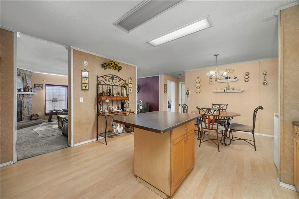 Sometimes all you really want is space, a good view, and a little peace and quiet. This 3-bedroom, 2-bath manufactured home sits on 27± fenced acres just west of Coffeyville with easy access to Hwy 166. The home offers a functional layout for easy living. In the living room you will find a wood-burning fireplace for cold winter nights. The eat-in kitchen has a small island with storage underneath. The primary bedroom has an en suite bathroom featuring a stall shower and jacuzzi tub- perfect for soaking the stress away. The land is fully fenced with a cattle guard by the house and chain-link fencing in the backyard, making it ideal for livestock or pets. A two-car carport and storage shed provide added convenience. The pond is the standout feature—perfect for fishing, relaxing, and enjoying quiet country evenings. The home does need some updates, including hail-damaged siding on the west side and carpet replacement, offering buyers an opportunity to update and add value. A deck in the backyard is ready for repair and personalization. This property offers open pasture, scenic views, and peaceful country living with close proximity to town. Call to schedule a tour today!