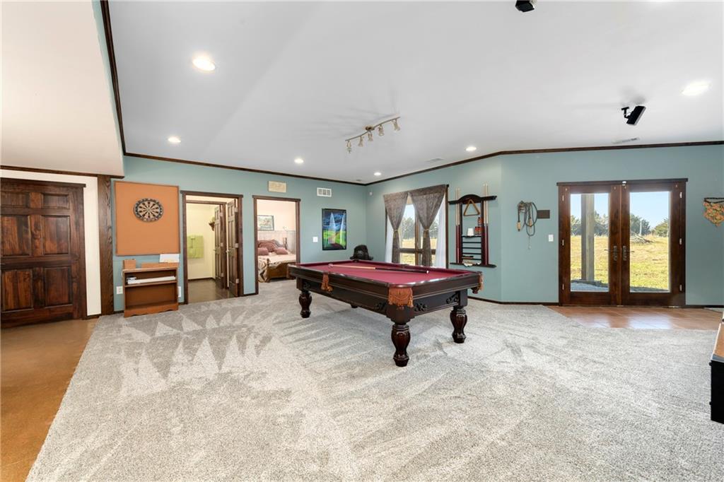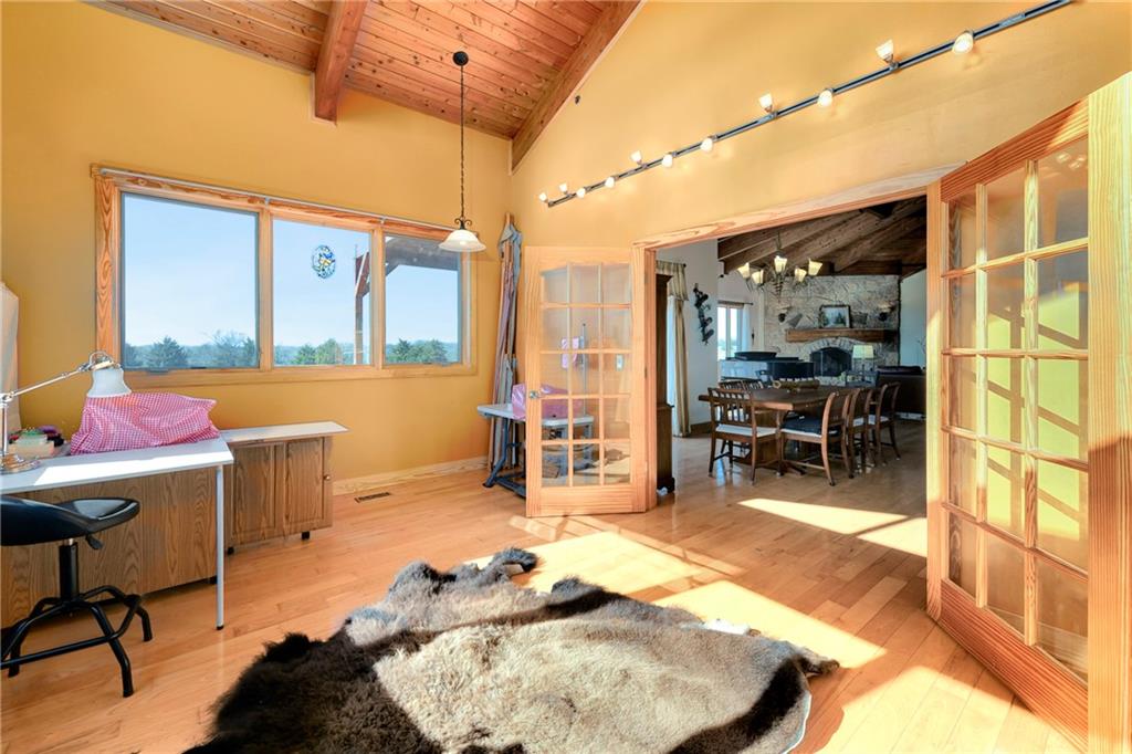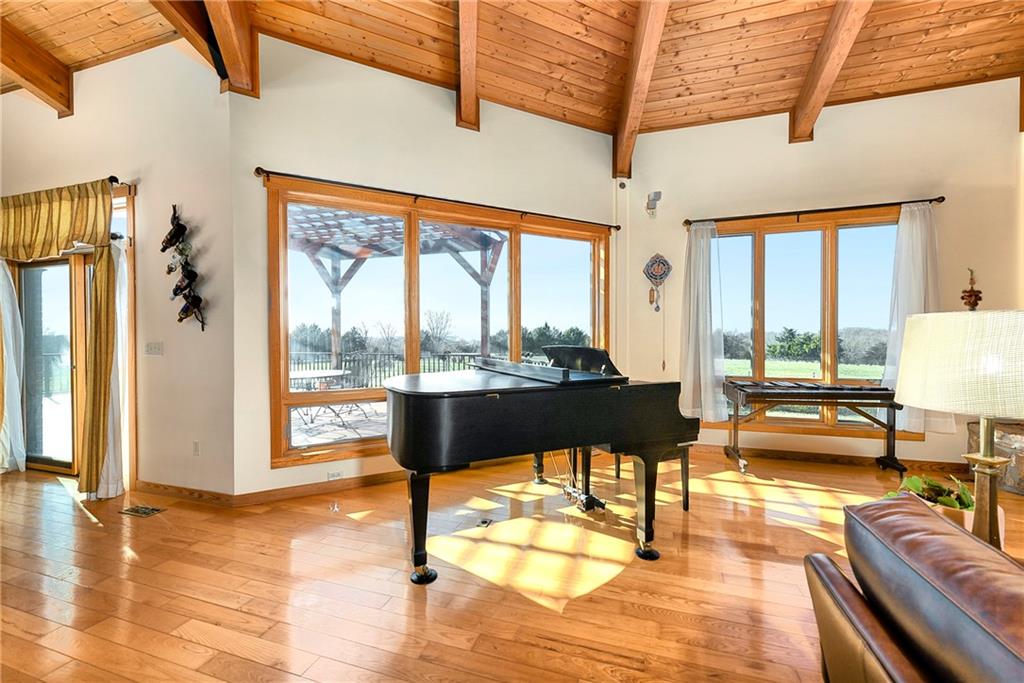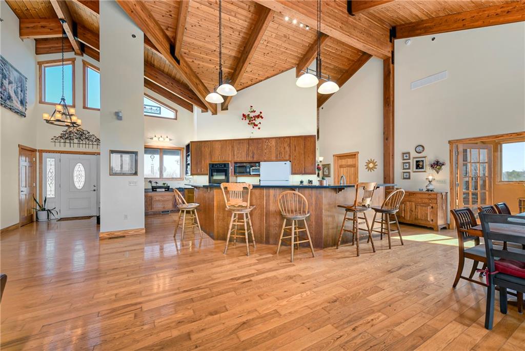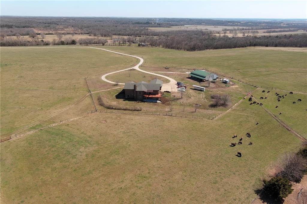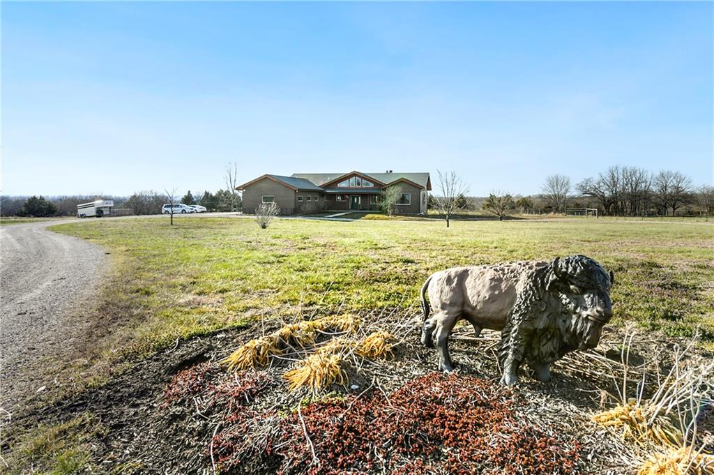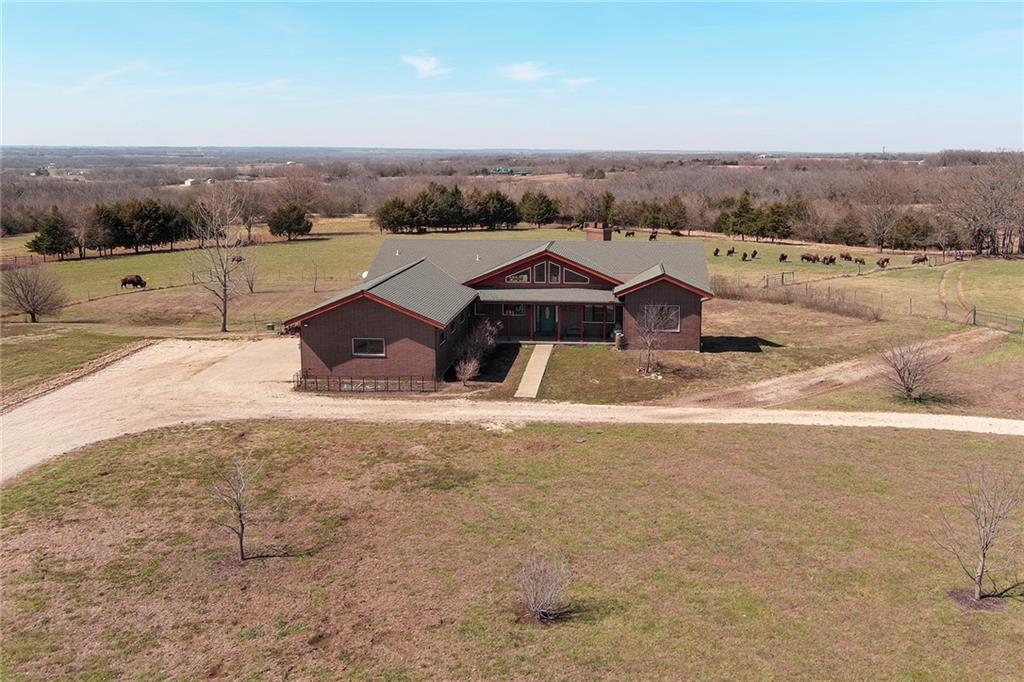 Incredible opportunity to escape the city and own a truly private paradise! Stonehaven Bison Ranch offers a rare blend of luxury, land, and limitless potential! Set on 131 breathtaking rolling acres, the property features a nearly 6000 SF custom brick home with soaring ceilings, incredible sweeping views, a huge outbuilding with concrete floors, and exceptional infrastructure for ranching, recreation, or future business ventures. Currently an operating ranch, the possibilities are endless: private estate, working farm, wedding or event venue, winery, or potential development opportunity. Complete with 3 ponds, 60 acres of hay ground, 60 acres of pasture, 10 wooded acres, chicken house and raised garden beds, there is something here to please everyone in the family. Deer, turkey and doves are plentiful and the hunting is excellent. This luxurious home is centered around a dramatic great room with walls of windows and a striking 2-story fireplace with custom mantle. The gourmet kitchen is a showstopper, offering a butlers' pantry, walk-in pantry, center island, baking area, abundant cabinets and a generous vaulted dining space. The luxurious primary suite features a fireplace, whirlpool tub, and dual-head shower. The main level also includes a majestic library with rolling ladder, laundry room, and a second bedroom off the kitchen. The walkout lower level is accessible from two staircases (one with chairlift) and includes 3 bedrooms, 2 baths, a spacious family room with fireplace, a gaming area and large bar. Indoor and outdoor entertaining options abound with composite deck with arbor which offers unmatched views. Highlights include geothermal heating & cooling, fire sprinklers, heated 3-car garage, cedar-lined closets, custom cabinets and solid surface countertops throughout, and fresh carpet and paint! If you have been dreaming of a refined rural lifestyle, this one-of-a-kind estate in the heart of Miami County just might be "the one"!