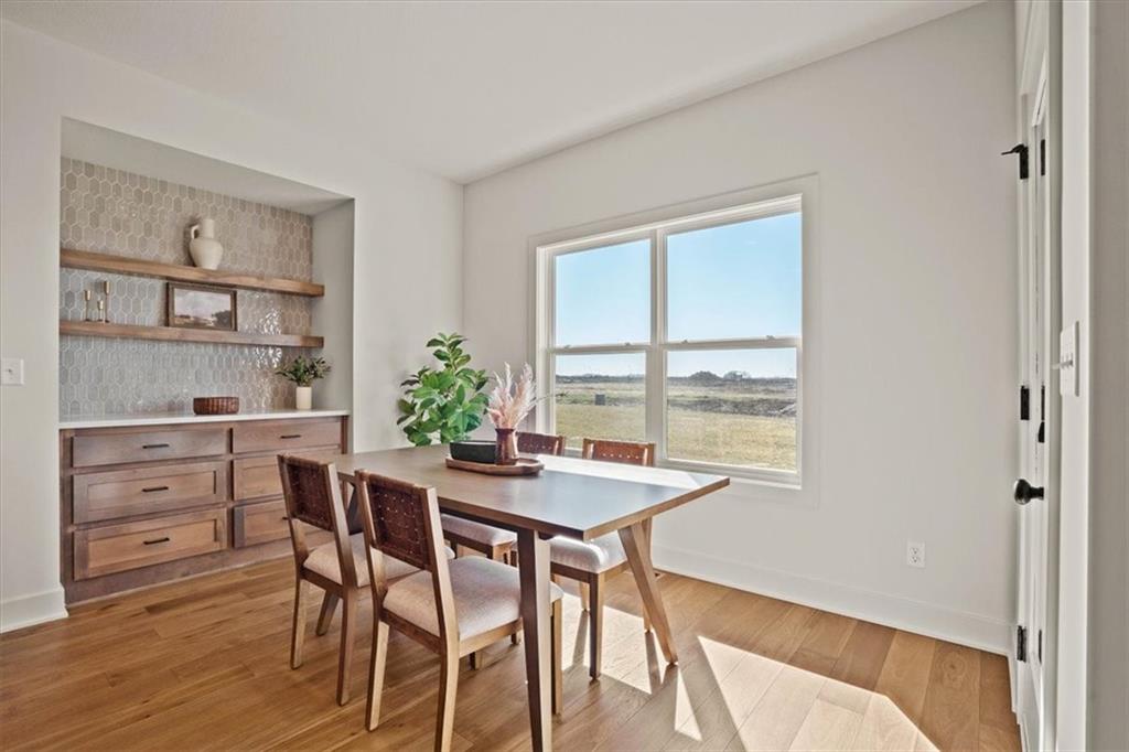 Experience the perfect blend of modern sophistication and functional design with the Greystone model by Elevate Design + Build, nestled in the exclusive Prairie View of the Good Ranch. This stunning 4-bedroom, 3-bathroom reverse 1.5-story home is situated on a corner lot, offering the rare combination of a quaint, tranquil atmosphere and close proximity to Raymore’s premium shopping, dining, and highway access. The heart of the home features a sun-drenched, open-concept living area anchored by a striking floor-to-ceiling fireplace and a gourmet-inspired kitchen. Culinary enthusiasts will love the sleek finishes, expansive walk-in pantry, and seamless flow to the covered rear deck—perfect for sunset views over the rolling meadows. The main level thoughtfully hosts both the luxurious primary suite and a secondary bedroom, while the finished lower level provides a generous recreation room, two additional bedrooms, and ample storage. Residents of Prairie View enjoy the rich heritage of the Good Ranch, complete with scenic woodlands, and the peace of mind that comes with living in the highly-rated Raymore-Peculiar School District.