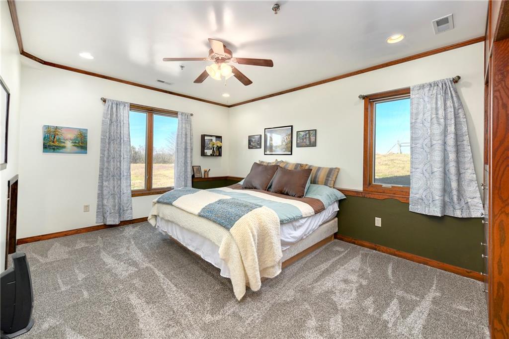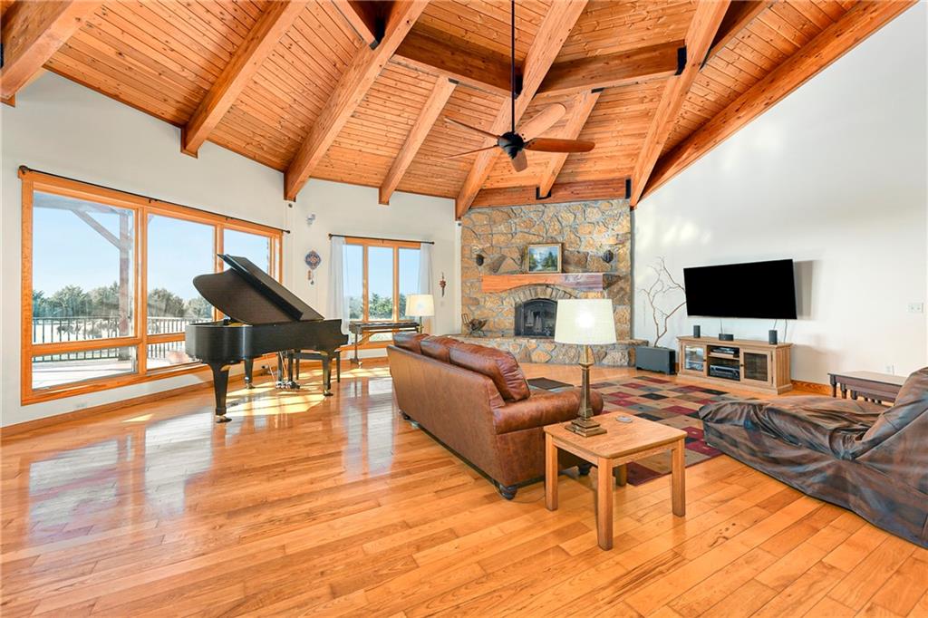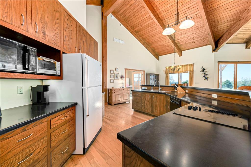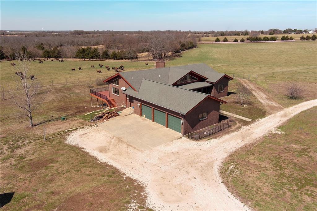 Incredible opportunity to escape the city and own a truly private paradise! Stonehaven Bison Ranch offers a rare blend of luxury, land, and limitless potential! Set on 131 breathtaking rolling acres, the property features a nearly 6000 SF custom brick home with soaring ceilings, incredible sweeping views, a huge outbuilding with concrete floors, and exceptional infrastructure for ranching, recreation, or future business ventures. Currently an operating ranch, the possibilities are endless: private estate, working farm, wedding or event venue, winery, or potential development opportunity. Complete with 3 ponds, 60 acres of hay ground, 60 acres of pasture, 10 wooded acres, chicken house and raised garden beds, there is something here to please everyone in the family. Deer, turkey and doves are plentiful and the hunting is excellent. This luxurious home is centered around a dramatic great room with walls of windows and a striking 2-story fireplace with custom mantle. The gourmet kitchen is a showstopper, offering a butlers' pantry, walk-in pantry, center island, baking area, abundant cabinets and a generous vaulted dining space. The luxurious primary suite features a fireplace, whirlpool tub, and dual-head shower. The main level also includes a majestic library with rolling ladder, laundry room, and a second bedroom off the kitchen. The walkout lower level is accessible from two staircases (one with chairlift) and includes 3 bedrooms, 2 baths, a spacious family room with fireplace, a gaming area and large bar. Indoor and outdoor entertaining options abound with composite deck with arbor which offers unmatched views. Highlights include geothermal heating & cooling, fire sprinklers, heated 3-car garage, cedar-lined closets, custom cabinets and solid surface countertops throughout, and fresh carpet and paint! If you have been dreaming of a refined rural lifestyle, this one-of-a-kind estate in the heart of Miami County just might be "the one"!