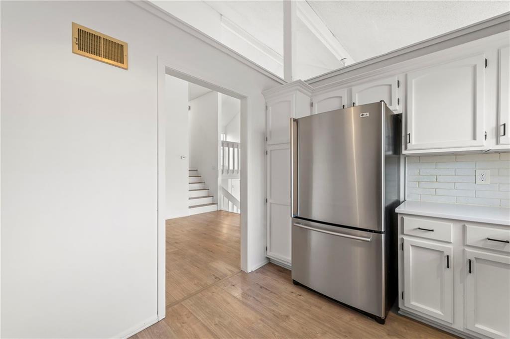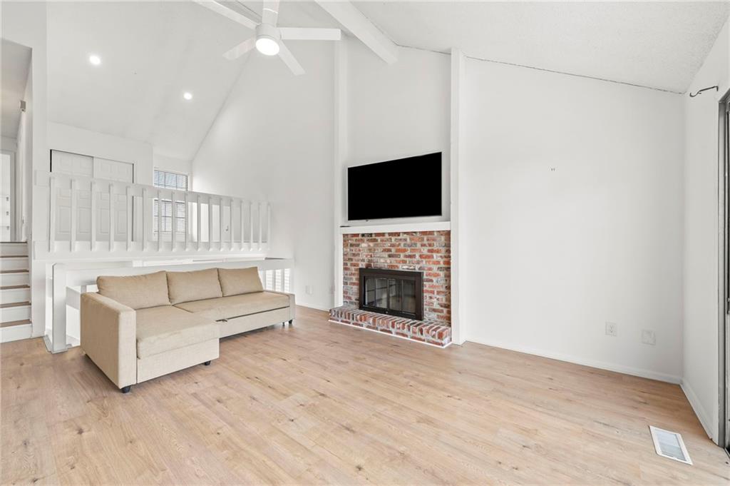 This townhome in The Trails features soaring vaulted ceilings, a seller-updated kitchen and bathrooms, new flooring, and a 2-car garage! Enjoy a private patio with a six-foot privacy fence and an unfinished basement—perfect for storage or to finish and add value. The kitchen opens to an inviting family room highlighted by a beautiful masonry fireplace. The loft overlooks the main level and works perfectly as a home office, workout space, or both, and could easily be enclosed to create a third bedroom. Located on a quiet cul-de-sac close to schools, shopping, and restaurants. Community amenities include walking trails, a swimming pool, and tennis courts for easy, low-maintenance living. Schedule your showing today!