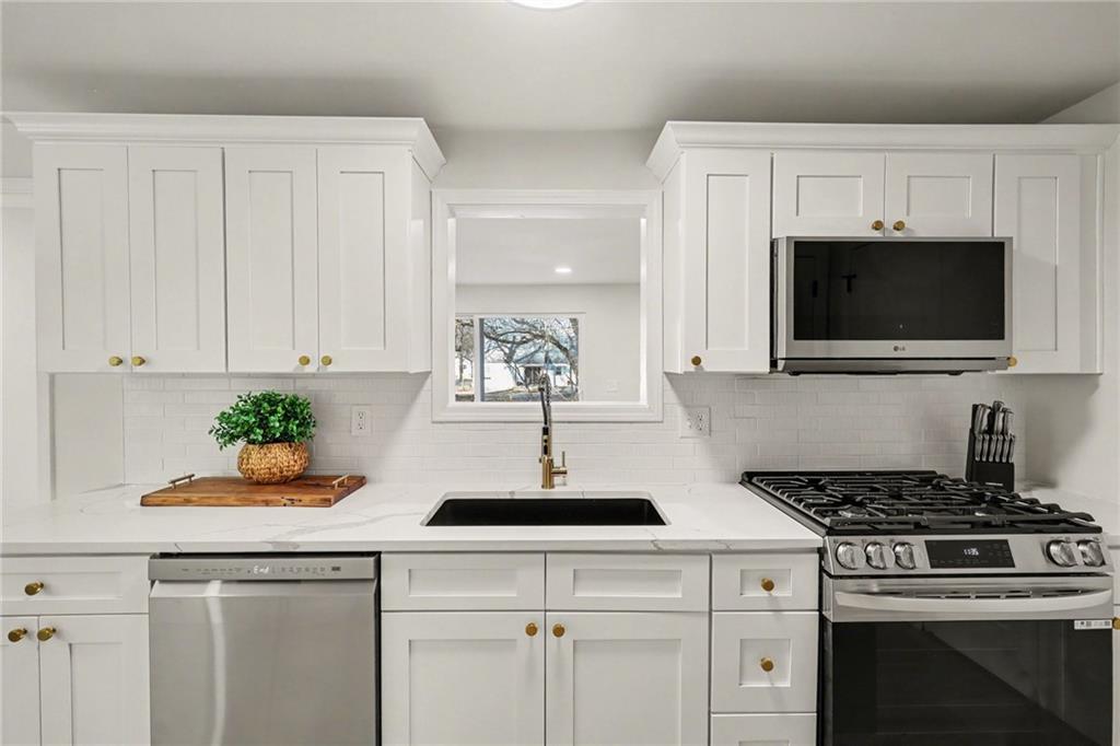 Marvelous in Mission! This 1.5-story home blends modern style with everyday comfort and effortless entertaining. The updated kitchen anchors the home with new stainless steel appliances—including a gas range/oven—while four bedrooms, all-new bathrooms, and two main-level living areas offer flexibility for any lifestyle. New flooring throughout features plush carpet in the bedrooms and sleek tile in the baths. An extra-large attic has been utilized to create additional living space with the 4th bedroom and a bonus room. The bonus room is perfect for a home office/library and you'll find a sectioned part of the bedroom to create the custom closet of your dreams. Ideally located within walking distance to Missions Water Works Park and popular Johnson Drive destinations, including the Mission Farmers Market—this is a location that truly delivers. Yard will be seeded prior to closing.