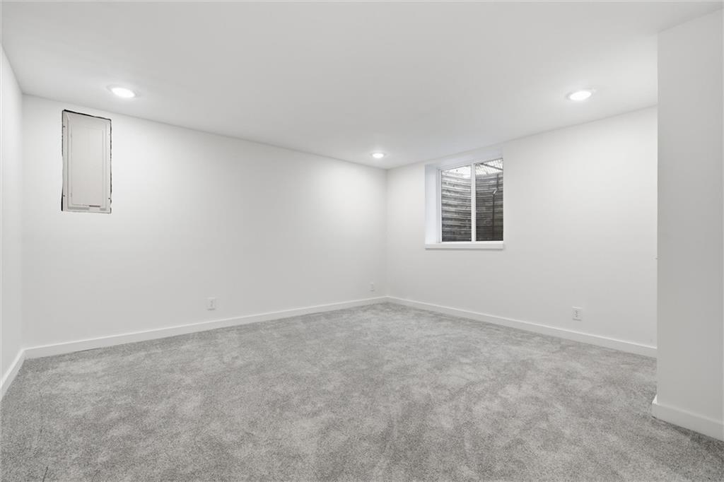 Discover this stunning custom home in the highly sought-after Village of Oakwood, where modern elegance blends seamlessly with timeless charm. This residence has been transformed into a sophisticated, move-in-ready retreat. Tucked at the end of a quiet no-thru street, the home offers exceptional privacy and tranquility. A bold exterior and impressive entry door entry make a striking first impression. Inside, engineered hardwood flooring, fresh white paint, recessed lighting, and updated fixtures create a bright, contemporary atmosphere throughout. The contemporary kitchen is both stylish and functional, featuring ample workspace and storage—plus all appliances stay. A conveniently located walk-in pantry and main-level half bath add everyday practicality. Enjoy the comfort of a main-floor primary suite, complete with a custom vanity, stunning spa-like tiled shower and expansive closet system. A second bedroom on the main level includes its own walk-in closet, and the laundry room offers additional storage with a custom wall cabinet. The updated hallway bathroom maintains the home’s clean, modern aesthetic. Large living room space with views of the backyard plus formal dining space and secondary living room/office space complete the main floor. Upstairs, two additional spacious bedrooms each feature mini-split units for personalized climate control, ensuring year-round comfort. Finished basement adds a great communal space for media area, brand new modern kitchen with center island, separate bar space plus two more bedrooms and full bathroom! Step outside to a beautifully fenced backyard featuring a charming upper stone patio, perfect for entertaining, along with a covered lower patio that offers shade and relaxation on warm summer days. Located within walking distance to Oakwood Manor Elementary and just minutes from local amenities and highway access, this thoughtfully renovated home delivers style, comfort, and convenience in one exceptional package.