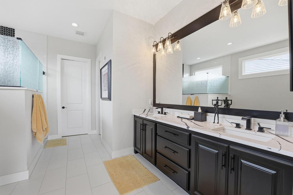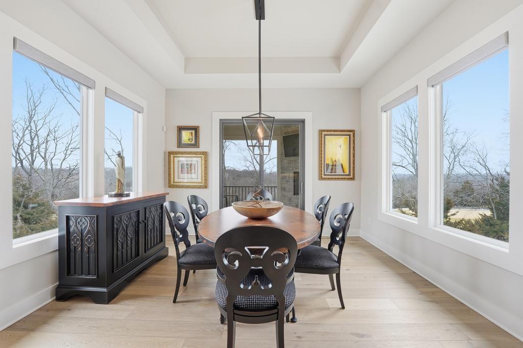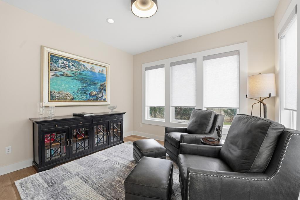 Almost new and lightly lived in, this custom-built home offers elevated design, thoughtful upgrades, and effortless living in the resort-style community of Cedar Creek. Perfectly positioned backing to Hole #5 tee box of the award-winning private Shadow Glen Golf Course, the setting offers both beauty and privacy. Inside, the light-filled, open floor plan showcases modern wide-plank luxury wood flooring, LED lighting throughout, & motorized shades. As you enter the home, your eyes are immediately drawn to the large wall of windows overlooking the golf course in the great room with vaulted ceiling, stunning fireplace and built-ins. The gourmet kitchen features a large quartz island, walk-in pantry, and GE Café appliances with striking copper hardware including a gas range, refrigerator, microwave, beverage fridge, and dishwasher. The laundry room offers a convenient sink and built-ins. Designed for comfort, you can relax on the screened-in porch with fireplace and TV. The spacious primary suite has wood floors and lighted tray ceiling. The spa-inspired bath has a large tiled shower, soaking tub, under-cabinet lighting, and a large walk-in closet with built-ins & dedicated makeup/vanity area. A second main level bedroom also features luxury wood flooring. The stunning lower level, complete with modern fireplace and a full wet bar featuring honed quartz counters, wine fridge, microwave, dishwasher, sink, and ice maker is perfect for gatherings with friends and family. Two additional bedrooms in the lower level with a shared bath are perfect for guests. A huge finished storage closet with custom built-ins provides exceptional organization. Additional upgrades include a recirculating water system, two 50-gallon water heaters, electric vehicle charger hookup, epoxy garage floor, sealed driveway, buried drains, and striking stucco and stone exterior. Maintenance-provided services include lawn care and snow removal. This is refined, low-maintenance luxury living at its best.
