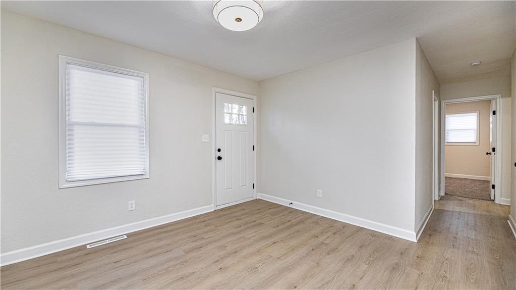 Updated and move-in ready! This all on one level Kansas City home features a 12x13 living room and spacious 10x16 kitchen/dining combo with LVP flooring, plus three bedrooms and a 15x11 non-conforming room with attached half bath?perfect for an office or flex space. Enjoy an oversized single-car garage, along with major updates including new windows, electric water heater, electrical panel, flooring throughout, interior/exterior paint, garage door, gutters, interior doors/trim, and light fixtures. All the big-ticket items are done! Agent/owner